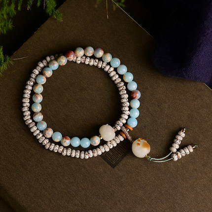 星月菩提手链小众创意设计碳烤猫爪莲花菩提双圈手串饰品 DS113