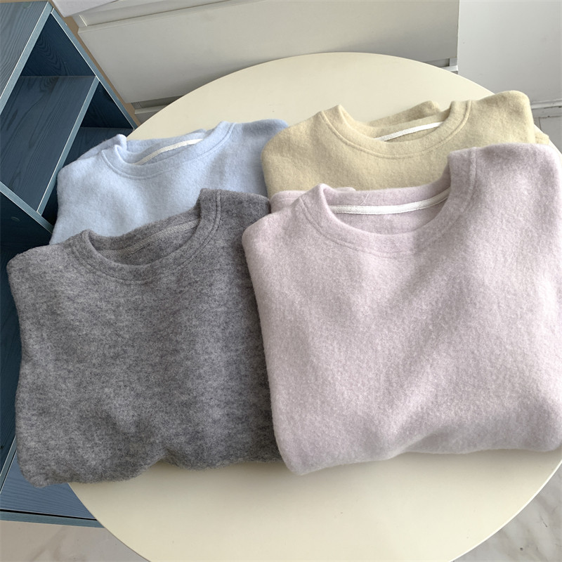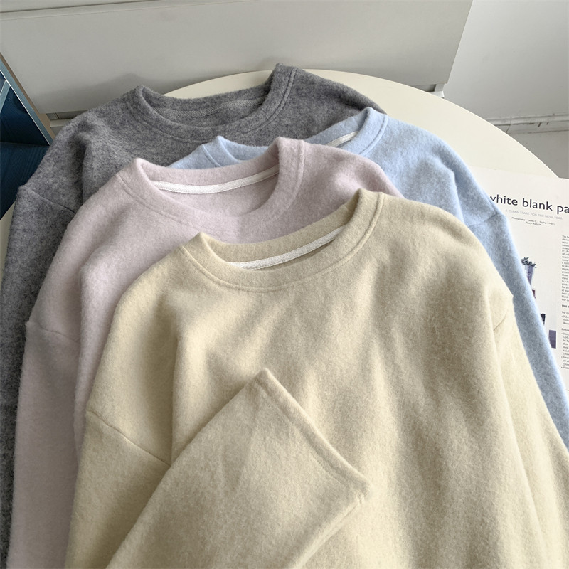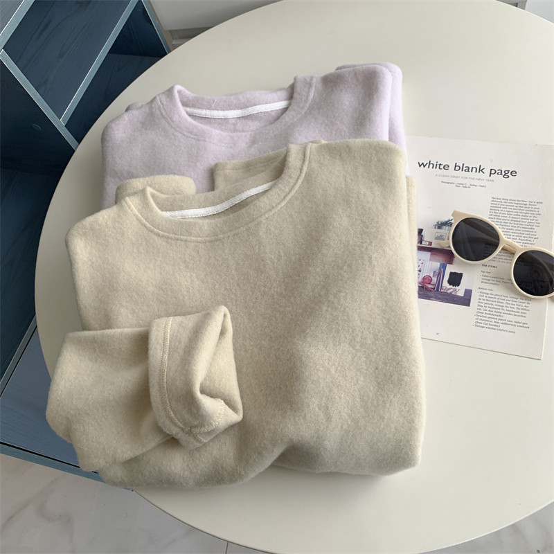 羊绒感马卡龙色光版卫衣女秋冬加绒加厚保暖内搭外穿大版套头上衣