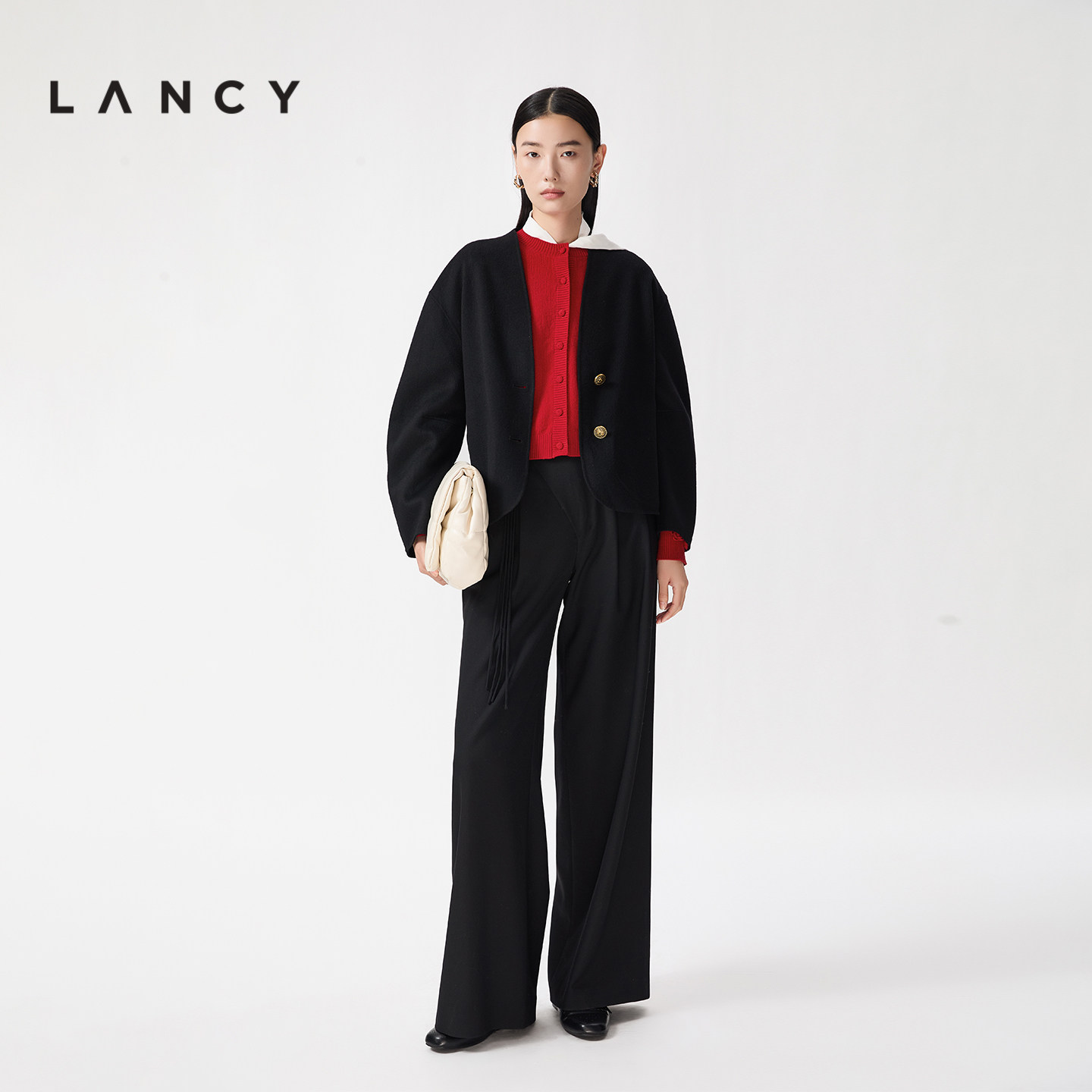 【金玉满棠】LANCY/朗姿2026春季新款气质无领纯羊毛毛呢外套短