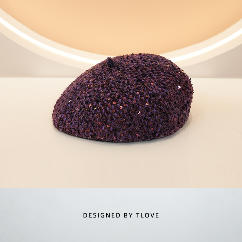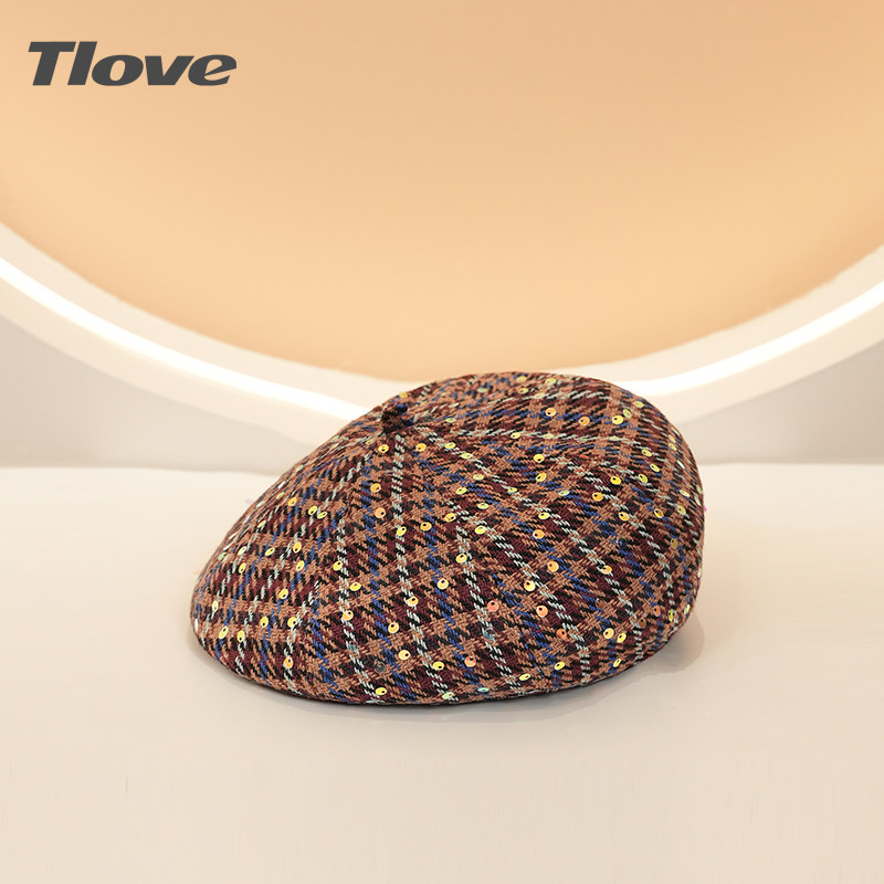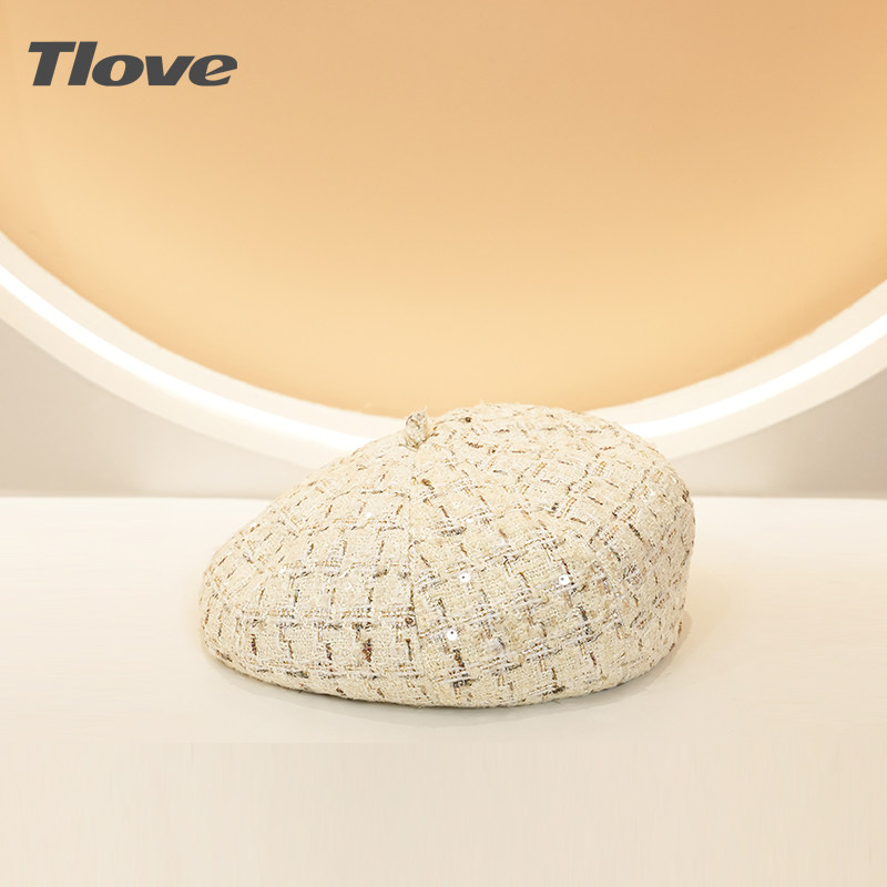 蓓蕾帽粗花呢格纹百搭小香风秋冬