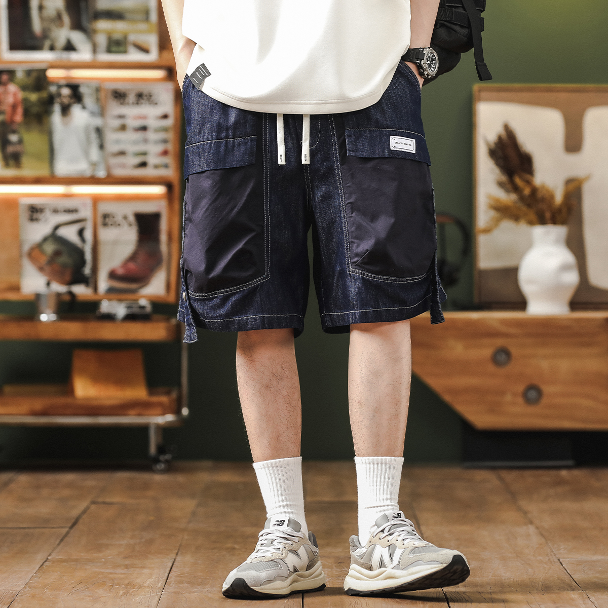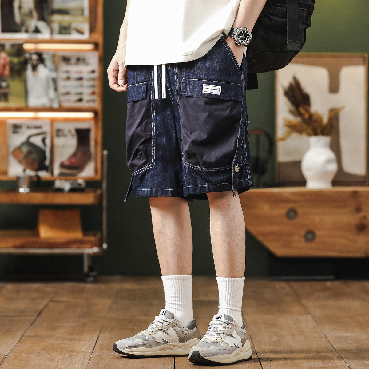 美式潮牌牛仔五分短裤男