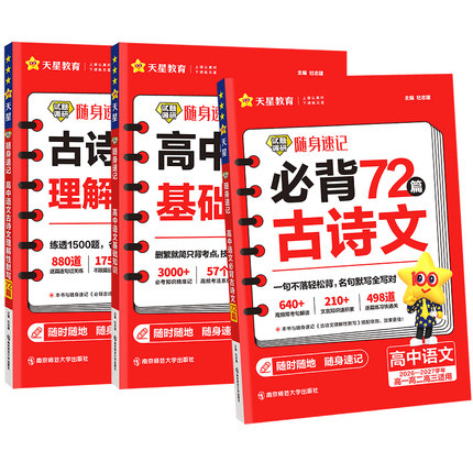 2027高考必背古诗文72篇高中必背古诗文古诗词理解性默写古代文化常识高考语文必备新课标教辅资料书试题调研随身速记小本天星教育