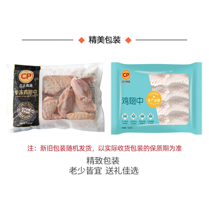 【正大官方】正大鸡翅中新鲜冷冻鸡翅中500g/袋正大食品鸡翅中