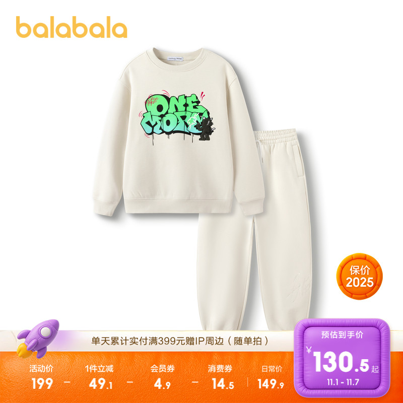 巴拉巴拉童装儿童长袖套装秋冬中大童男女童休闲卫衣加绒两件套潮