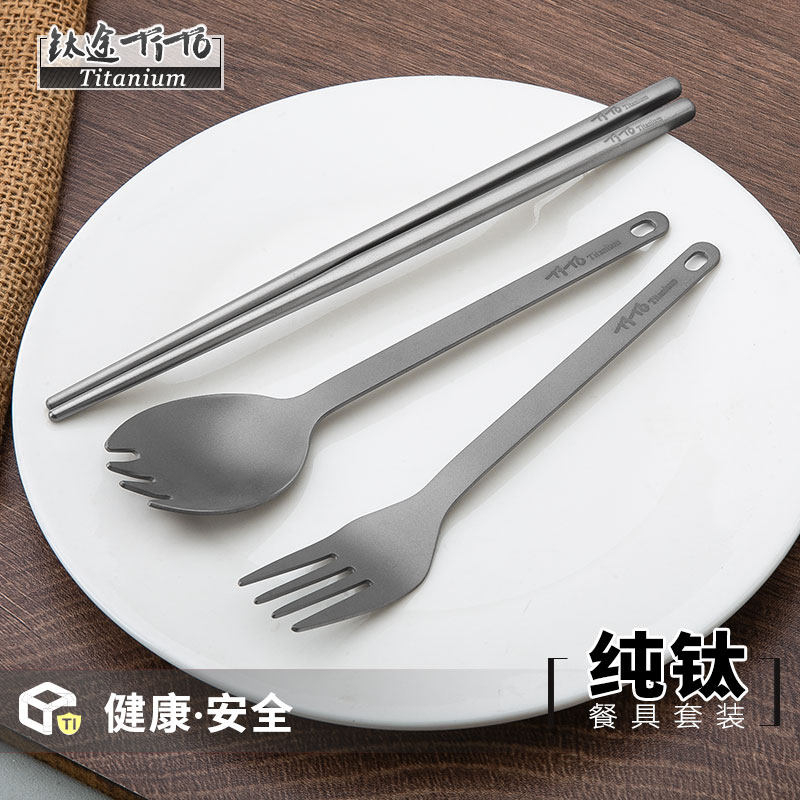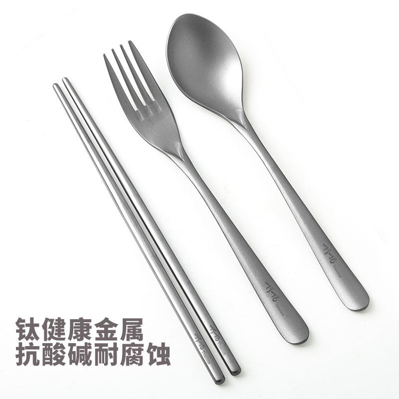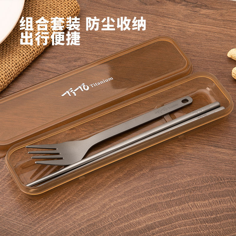 钛途TiTo纯钛筷子勺子叉子餐具套装户外便携钛合金儿童便当盒露营