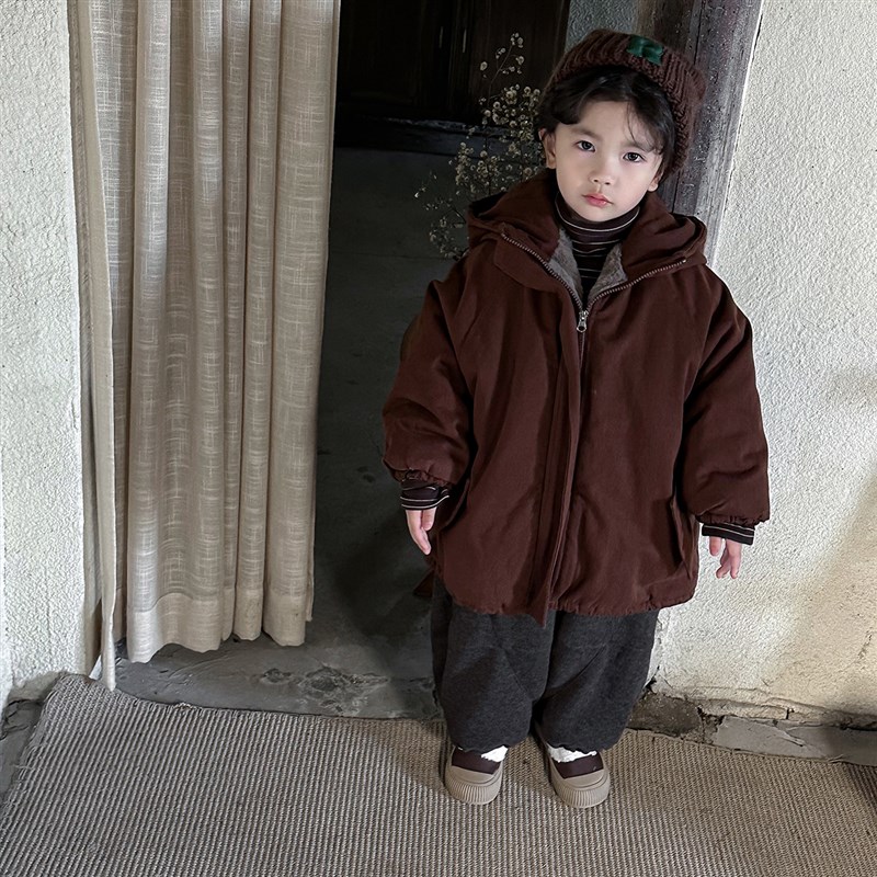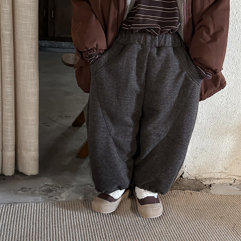 暮晨家新款冬装2024男童加绒呢子灯笼裤中小童加厚宽X松长裤阔腿