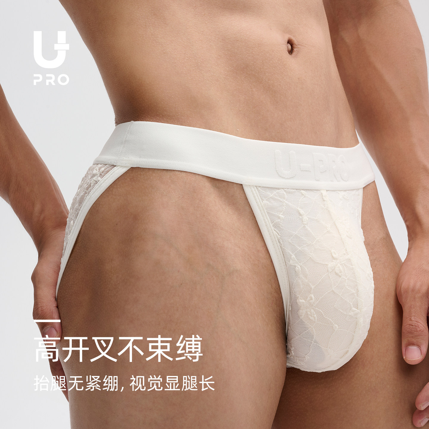 UPRO柚璞男士高开叉蕾丝高弹三角内裤黑白内衣