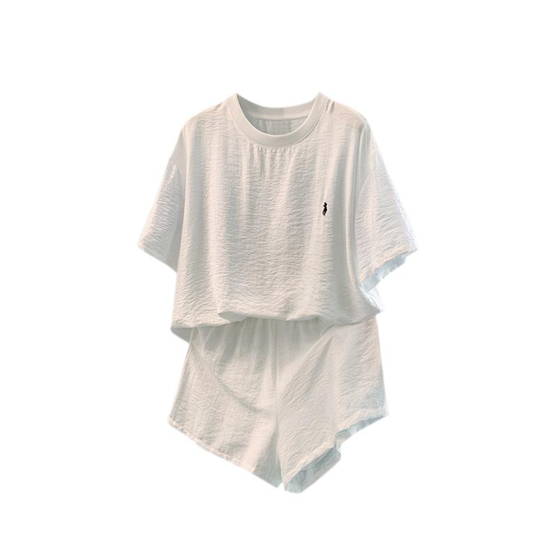 天丝麻阔腿裤套装女士夏季2025年新款休闲运动白色T恤短裤两件套
