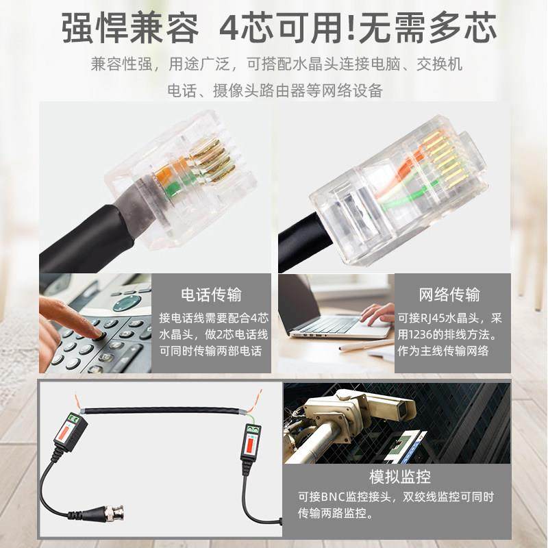 4芯四芯超五类室外双护套双绞线监控摄像头网线家用电话线专用0.5