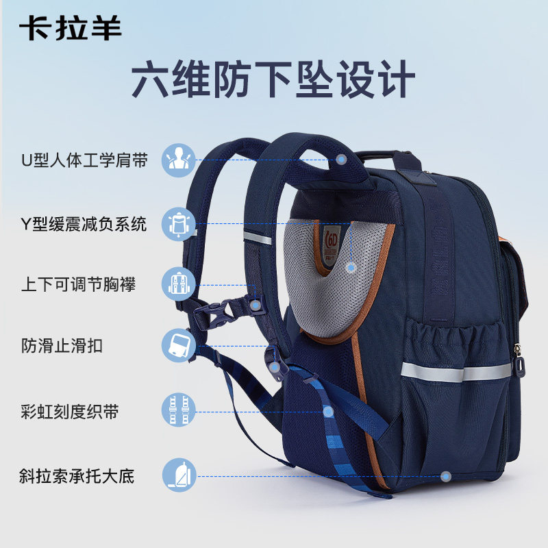 【蒋勤勤代言】秋冬新品卡拉羊1-4-6年级小学生云朵书包男六维减负防下坠女新款幼升小双肩背包大容量多隔层