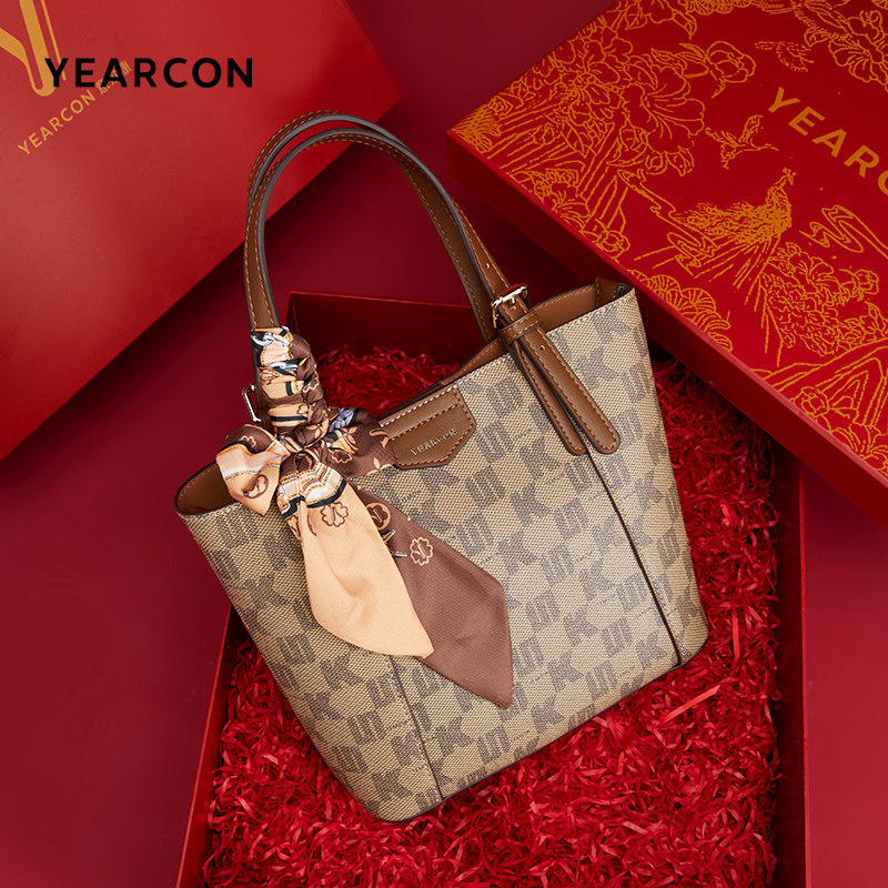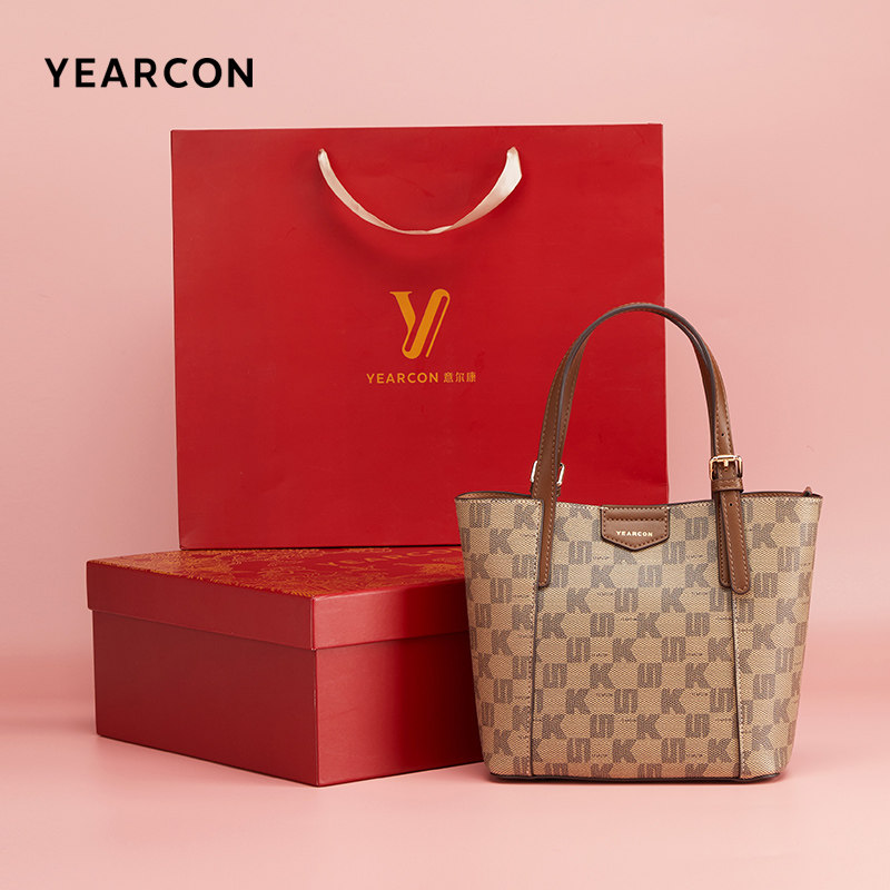 意尔康女包新款老花水桶包菜篮子包手提包百搭通勤托特包斜挎包