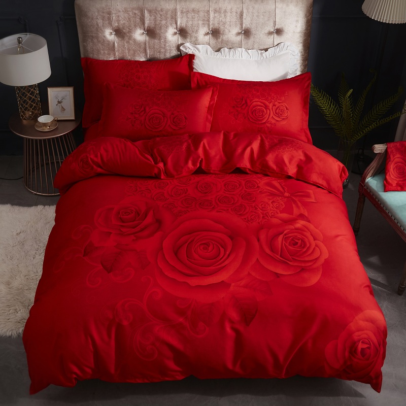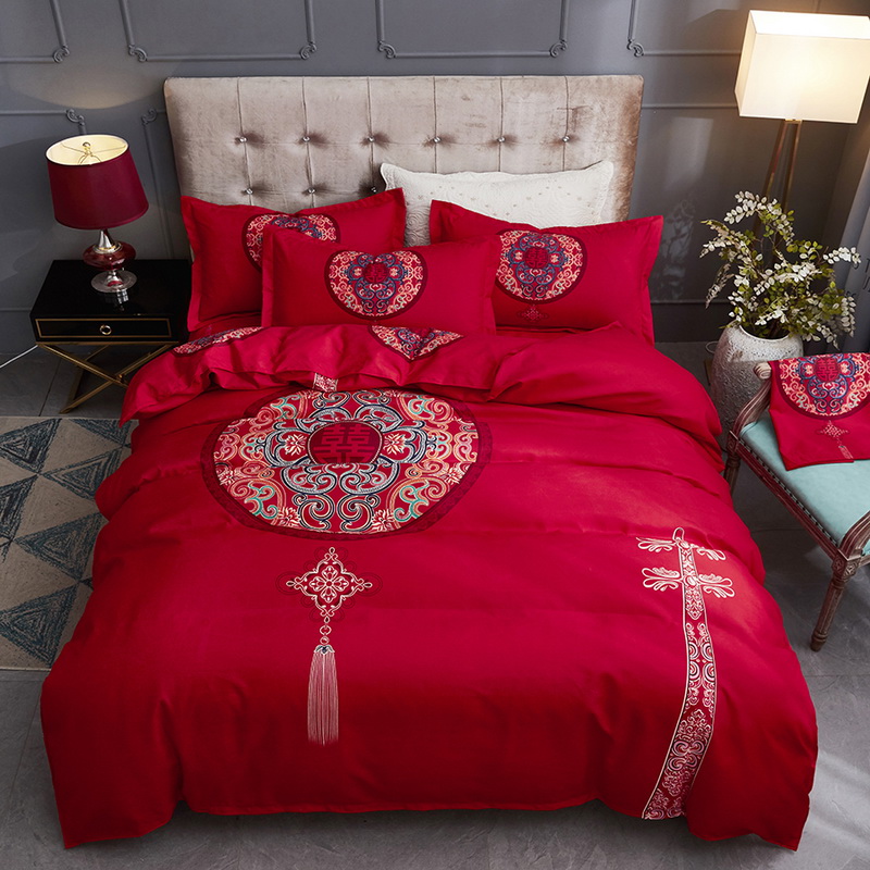 大红色婚嫁四件套全棉婚被婚礼婚房婚庆庆品套件结婚床上用品
