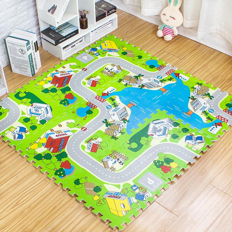 新品明德城市道路拼接儿童游戏垫宝宝爬行垫城市轨道泡沫拼接垫