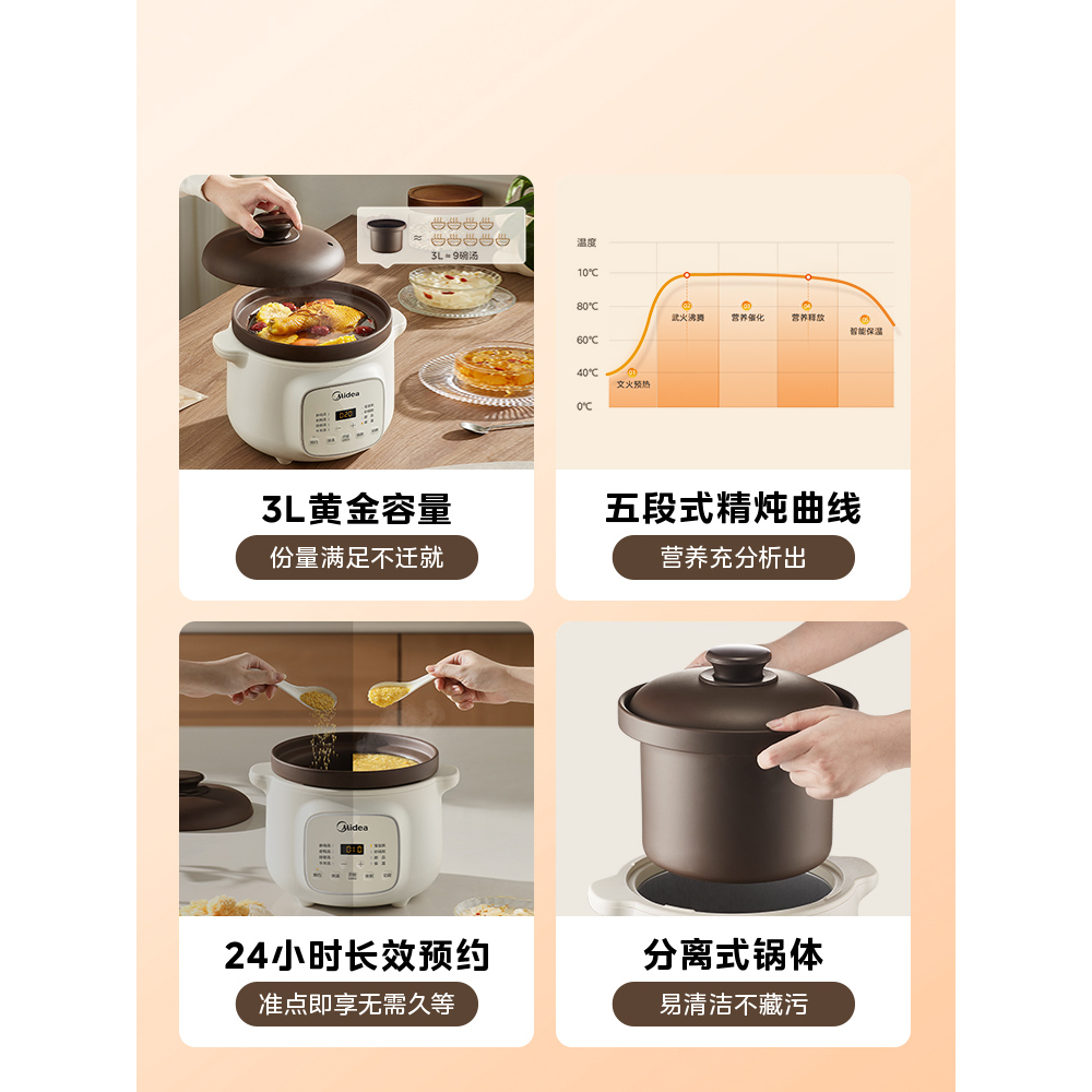 美的电炖锅煲汤锅家用全自动砂锅陶瓷炖锅炖盅煮粥新款官方正品