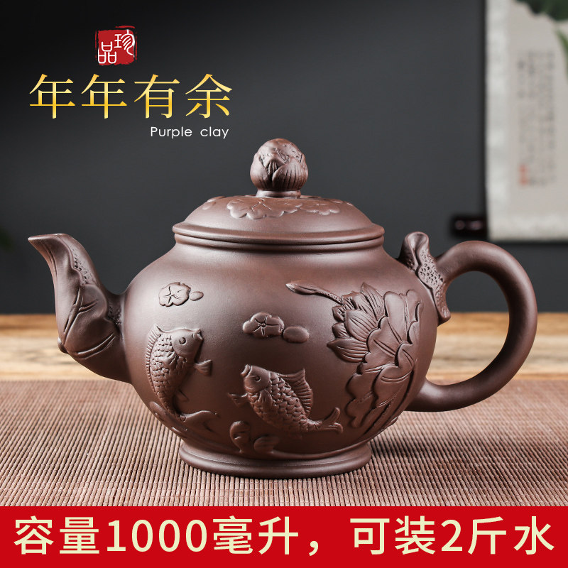 宜兴紫砂壶大号年年有余壶家用手工泡茶壶大容量功夫茶具茶杯套装