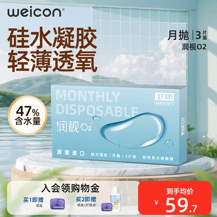 卫康润视O2月抛3片硅水凝胶隐形眼镜近视透明片舒适水润