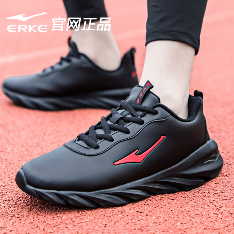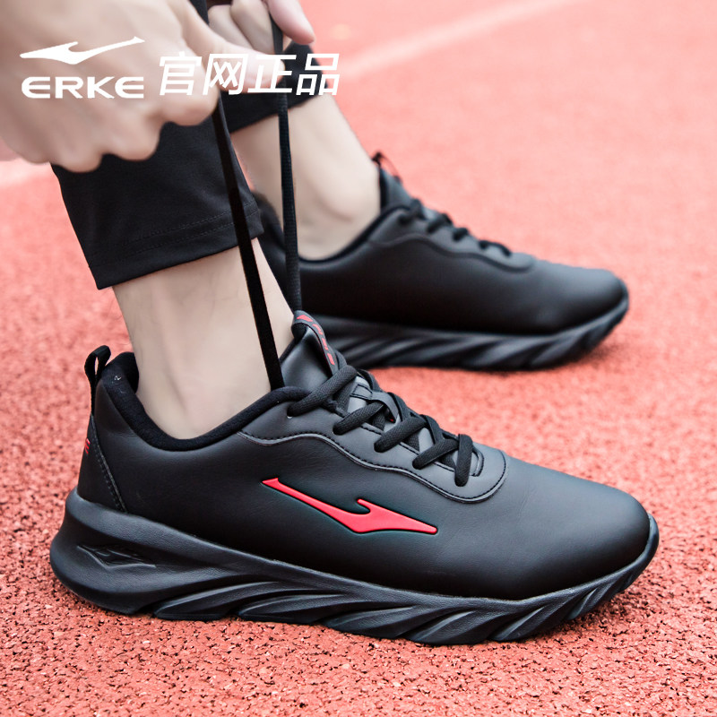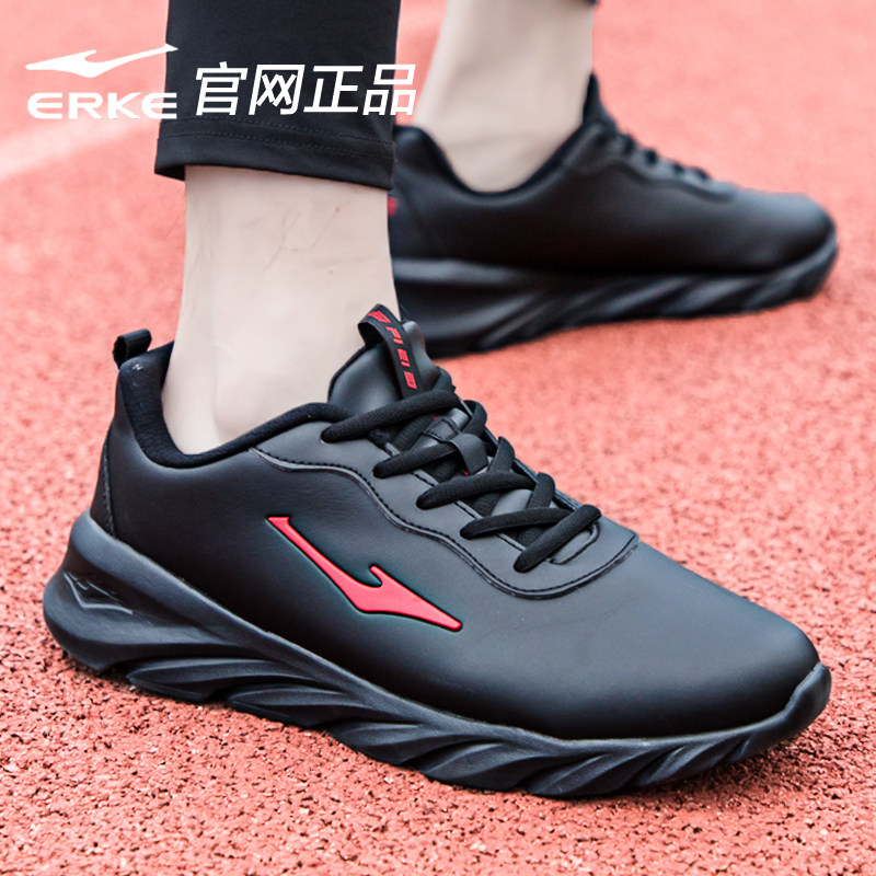 鸿星尔克男鞋防水鞋秋冬鞋子男红星官方旗舰皮面跑步鞋男士运动鞋
