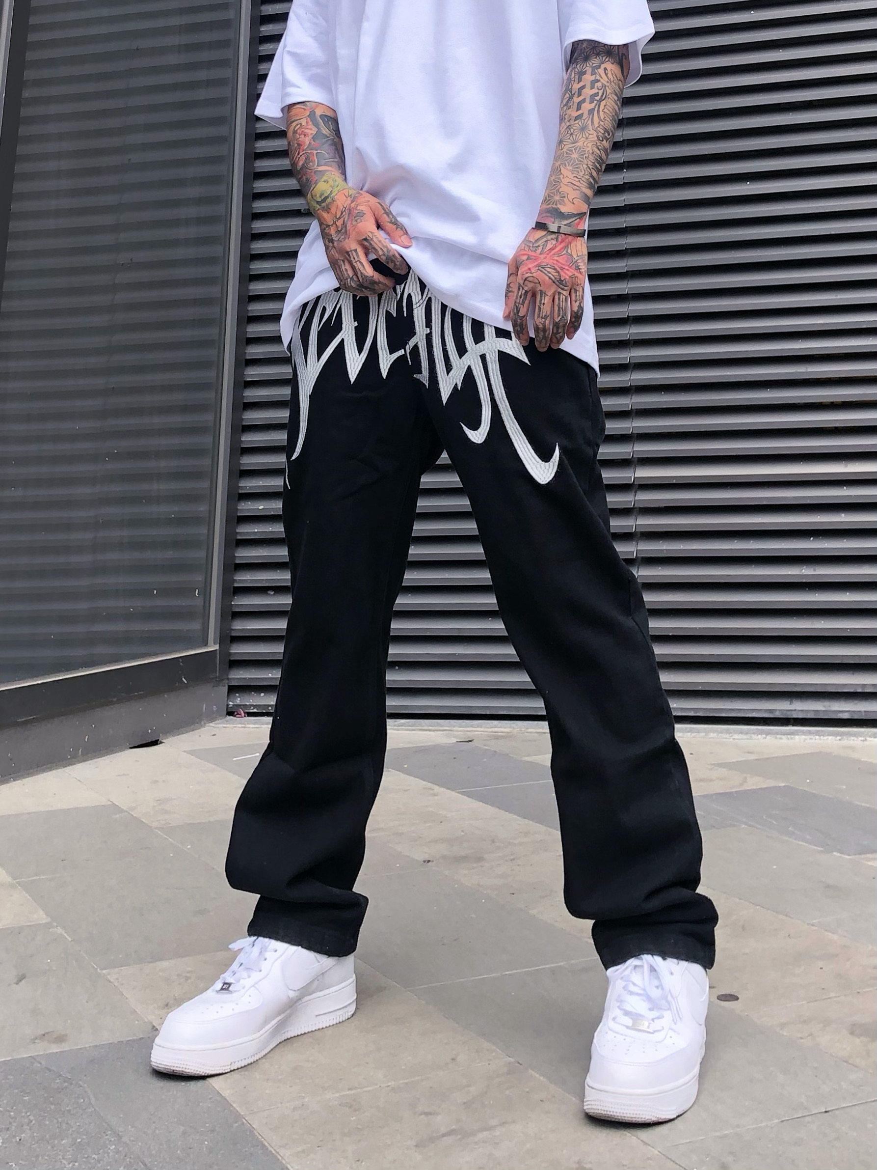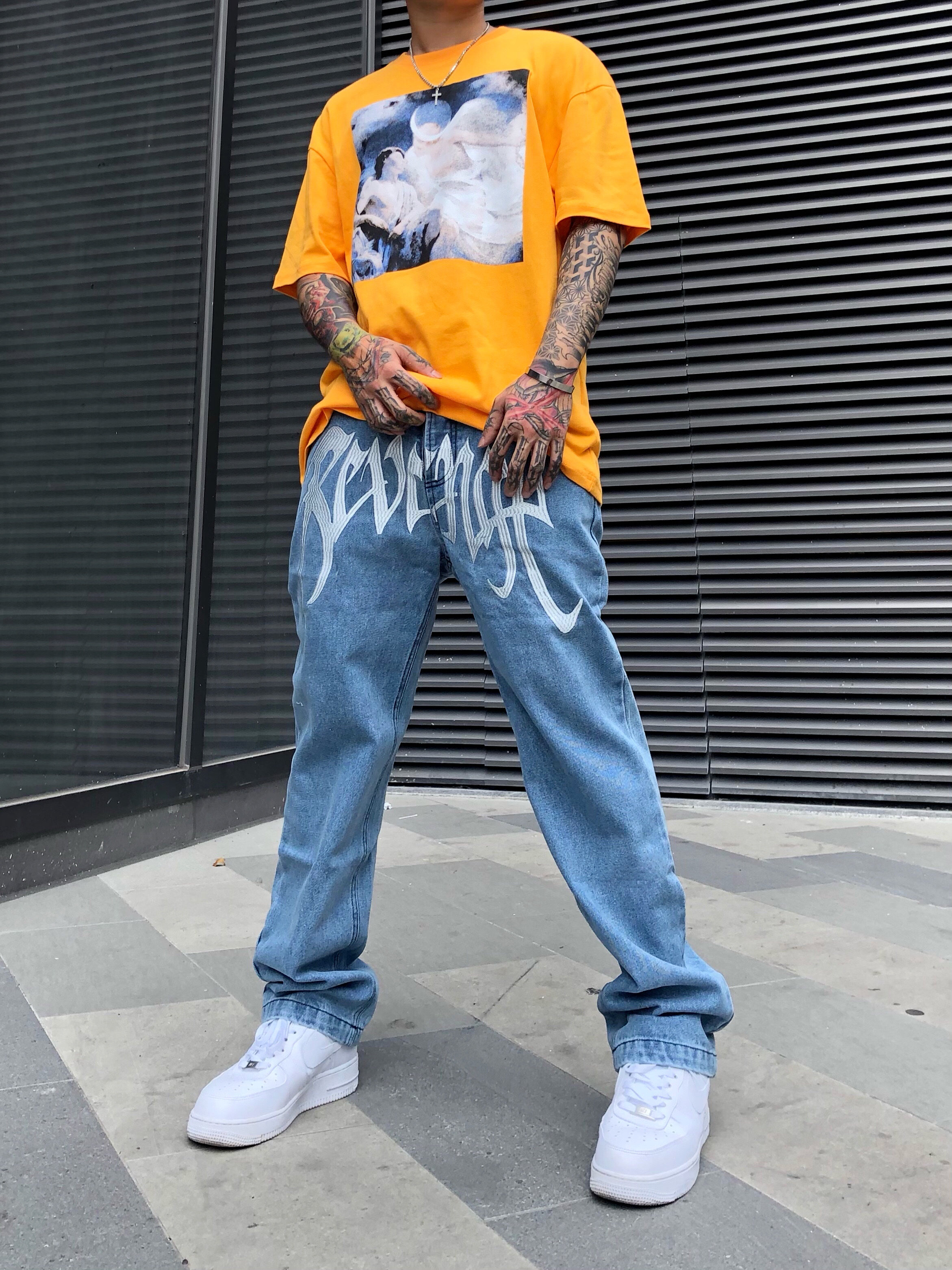 revenge裤裆刺绣高街嘻哈牛仔裤