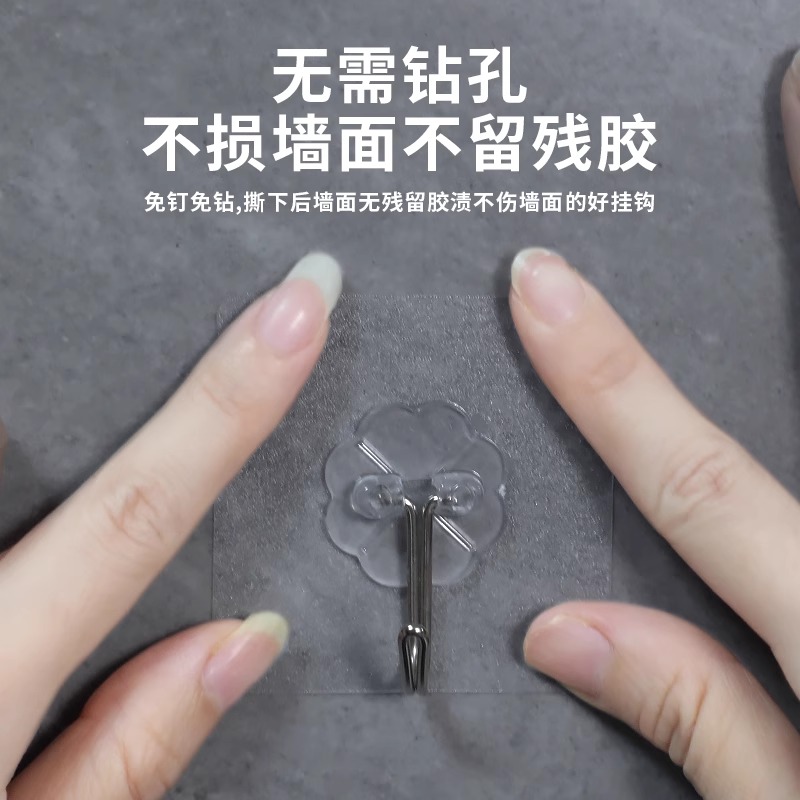 透明粘钩强力无痕挂钩挂钩强力粘胶承重免打孔厨房墙壁门后粘钩