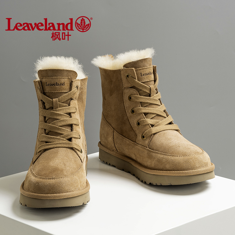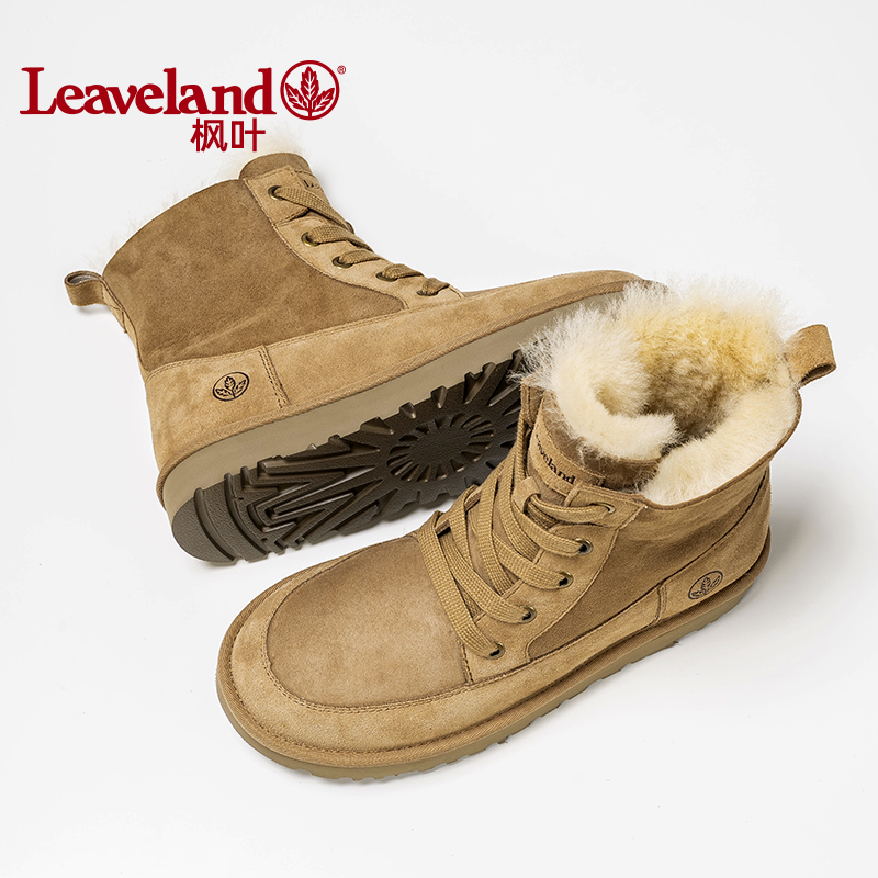 枫叶男鞋冬季高帮棉鞋男皮毛一体靴子东北加绒保暖雪地靴羊毛女鞋