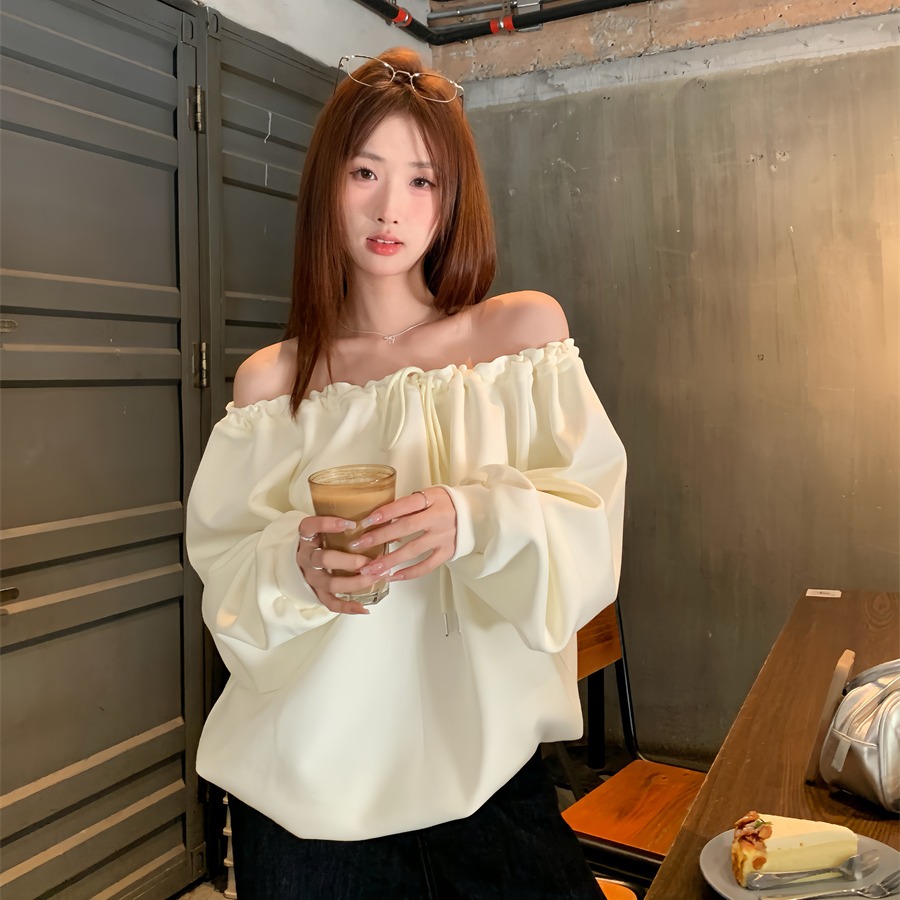 绑带斜肩宽松卫衣女新款秋季韩系慵懒风套头时尚感长袖上衣ins潮