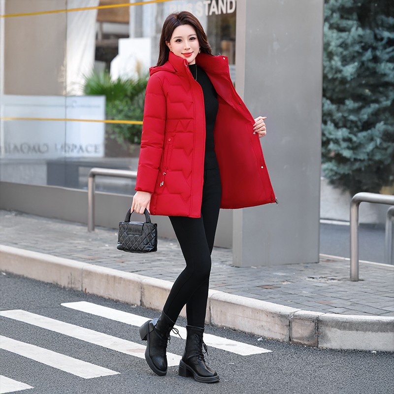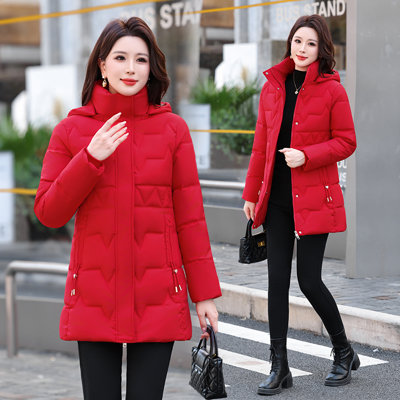 年轻妈妈棉袄外套冬季新款棉衣女中长款修身加厚棉服连帽收腰中年