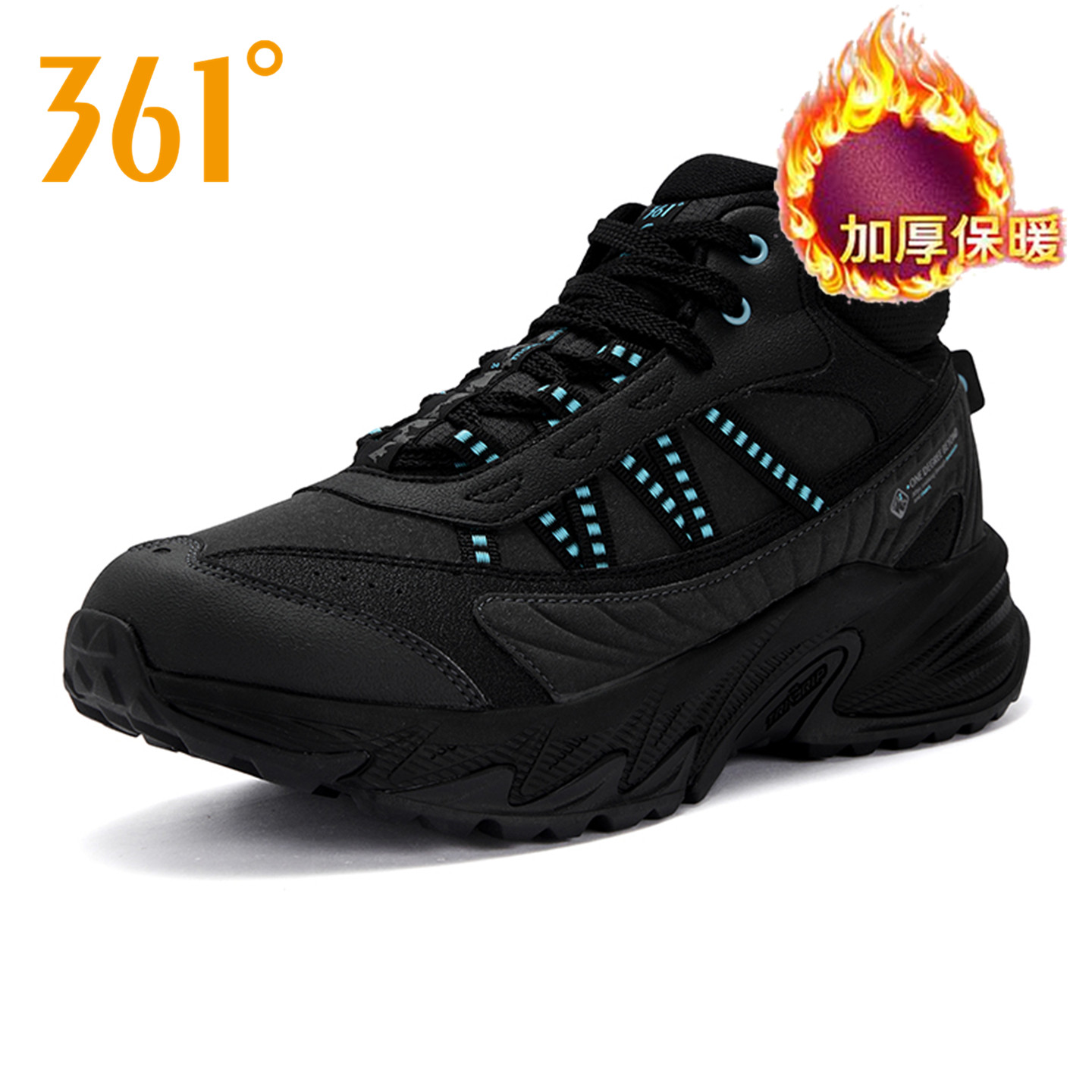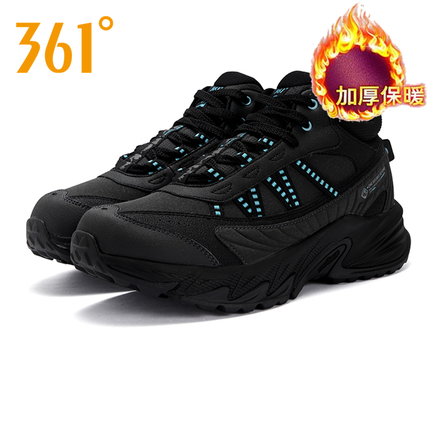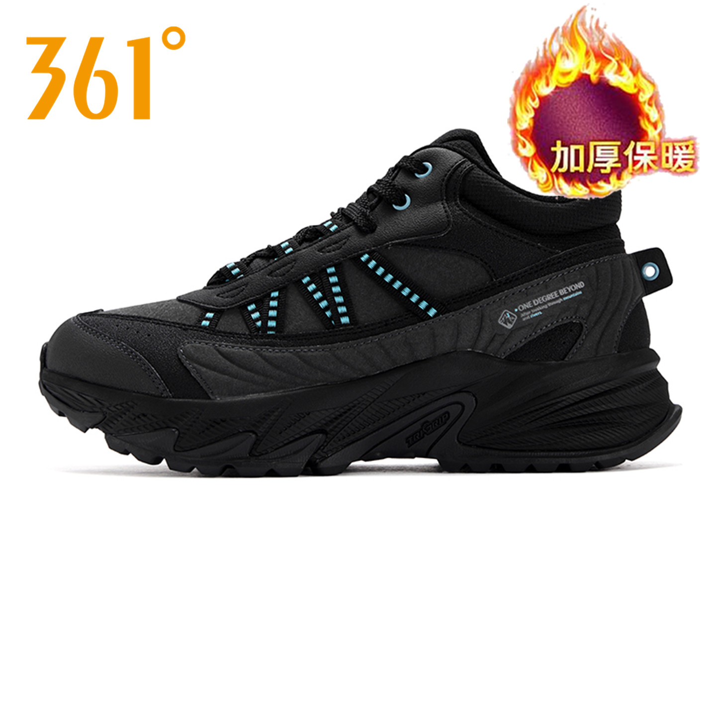 361度男鞋黑色保暖老爹鞋2025冬季新款户外登山运动雪地运动鞋子