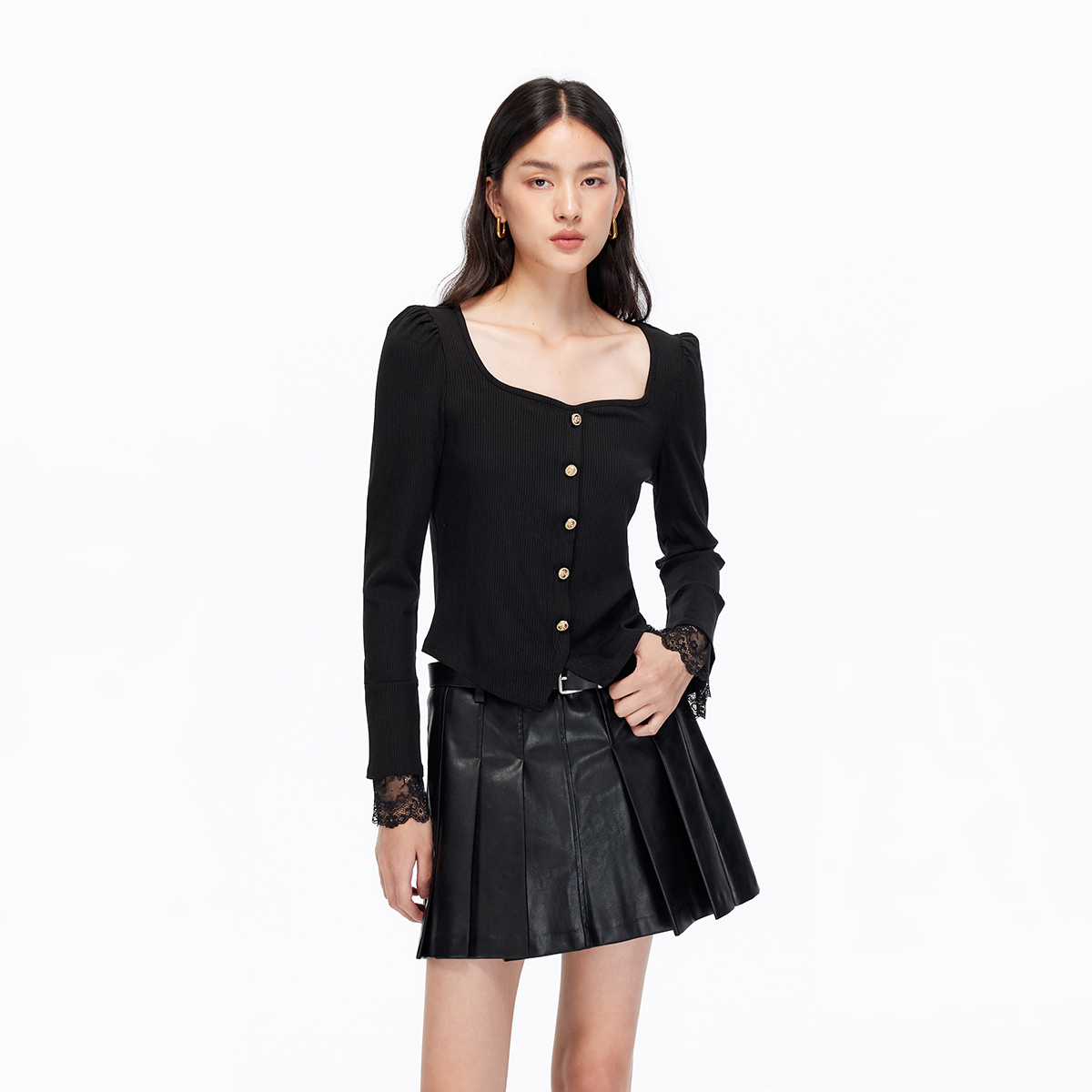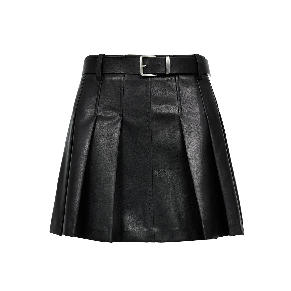 m区绫致Vero Moda半身裙2025秋冬新款同色腰带PU百褶裙显高显瘦