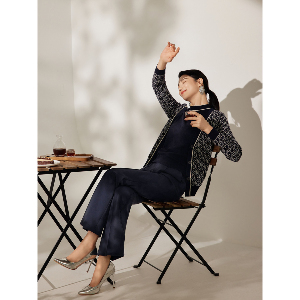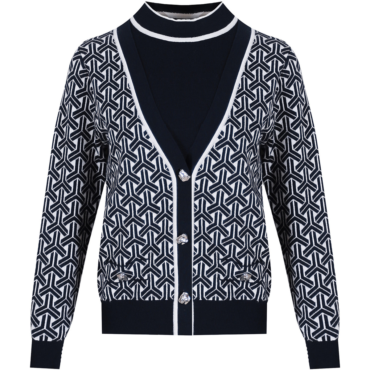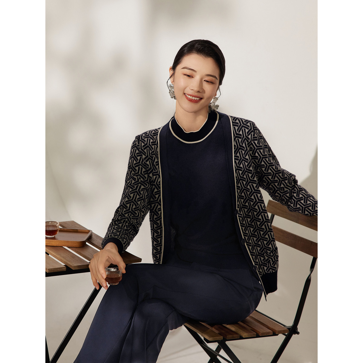 【田畴几何】BBLLUUEE/粉蓝衣橱秋冬女装复古绵羊毛假两件开衫女