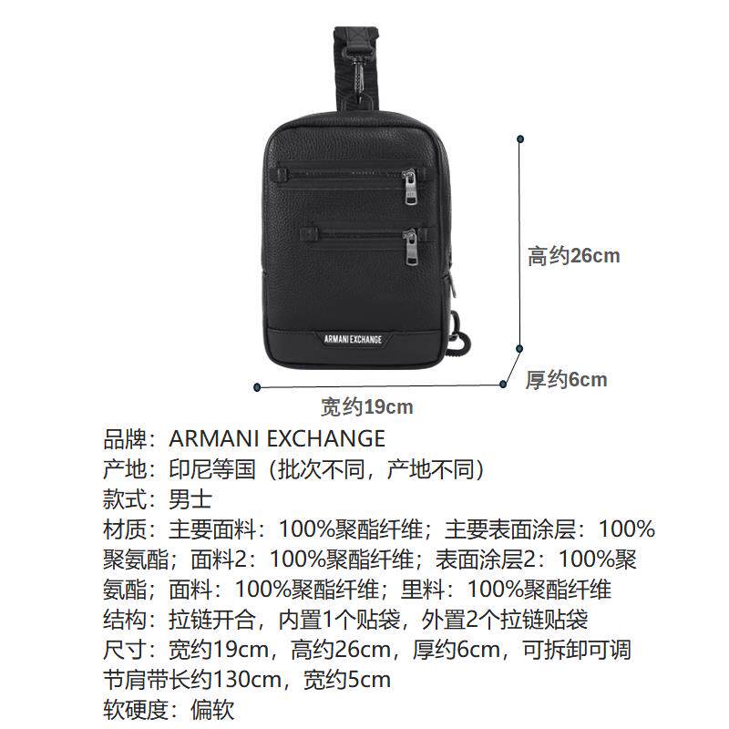 AX阿玛尼 男士竖款邮差包胸包单肩斜挎包 952696 4F863