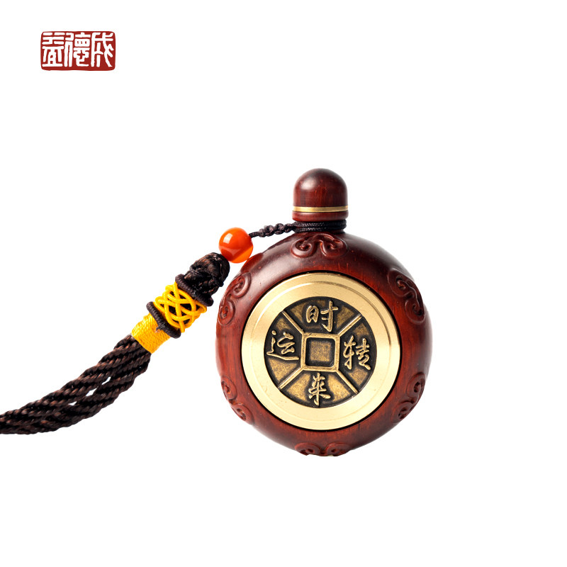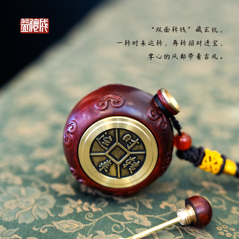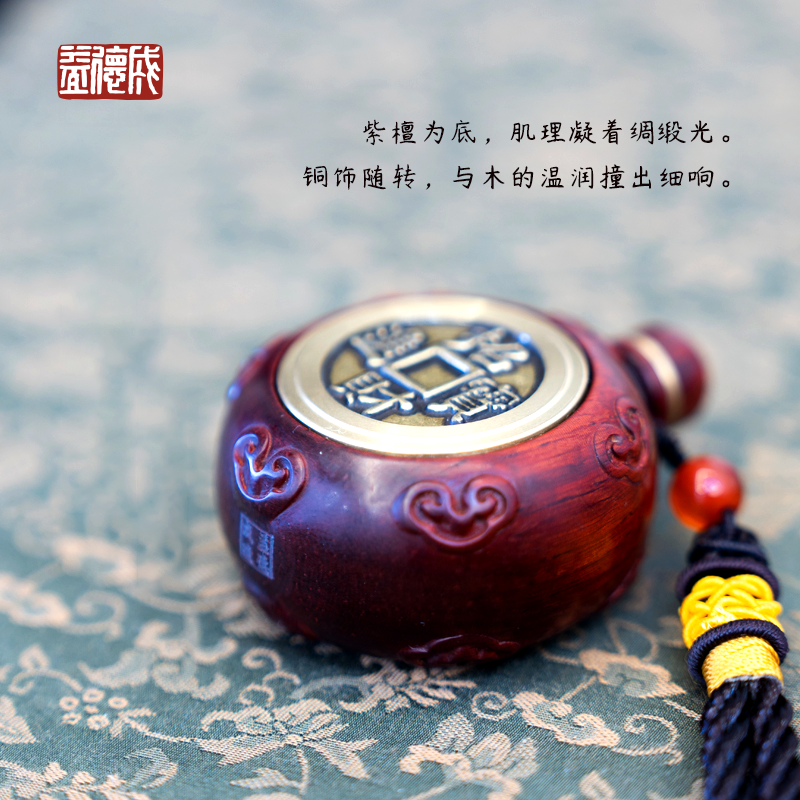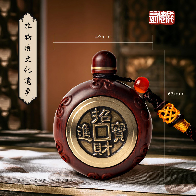 益德成铜制品双面转招财进宝紫檀鼻烟壶手把件手工双面可旋转礼品