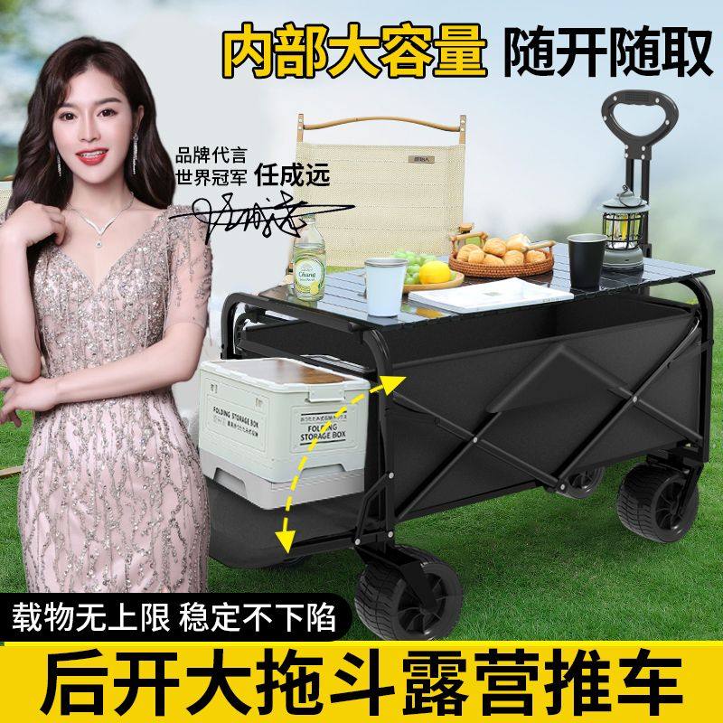 露营车手推车营地拖车户外可折叠野营小拉车野餐车儿童可躺摆滩车