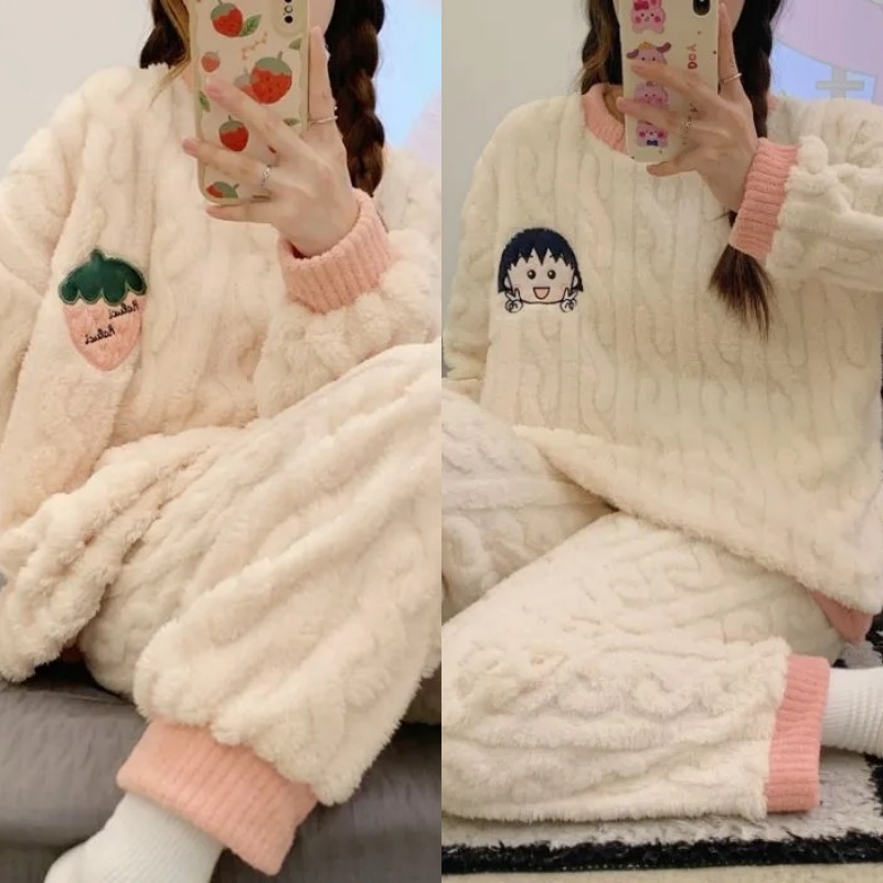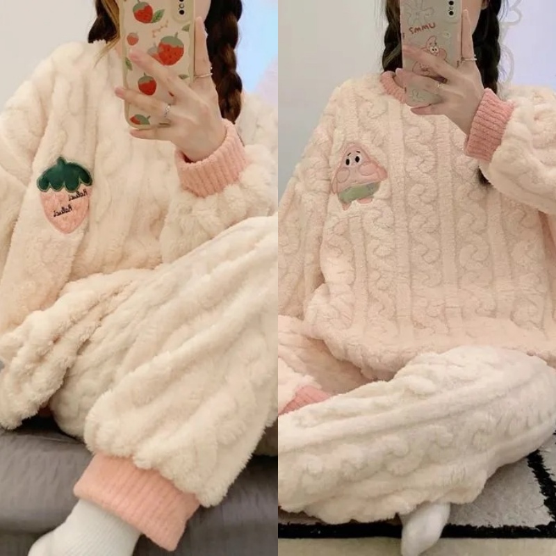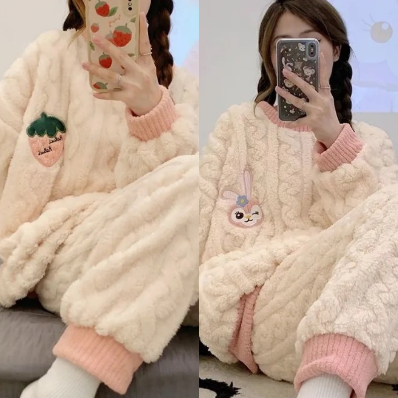 睡衣女冬季法兰绒韩版长袖加厚加绒珊瑚绒可爱秋冬季家居服套装女