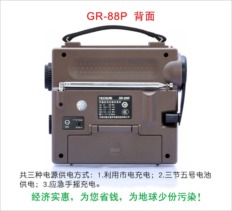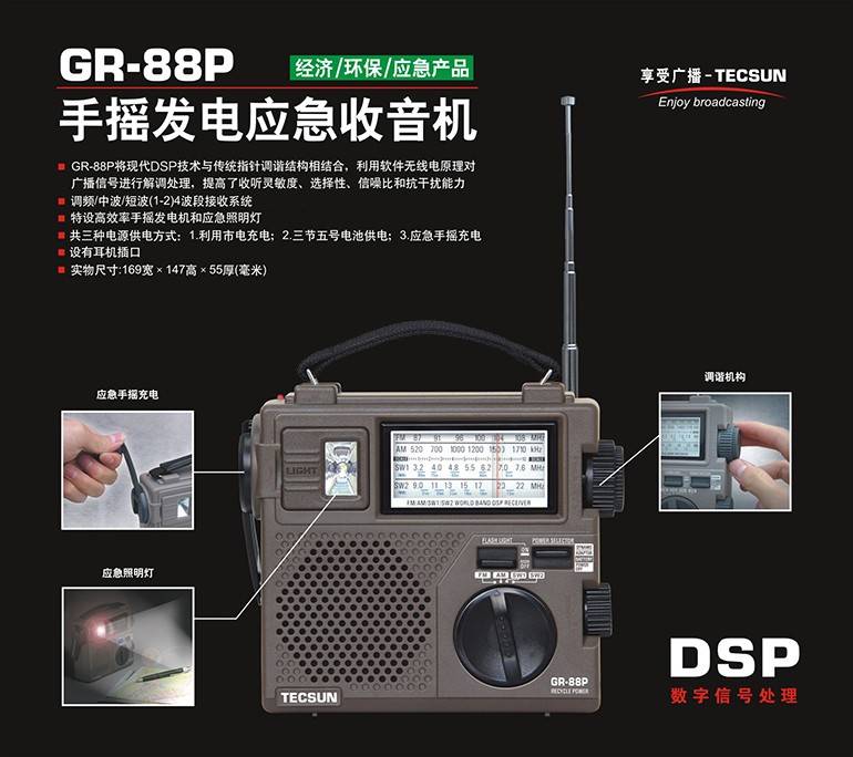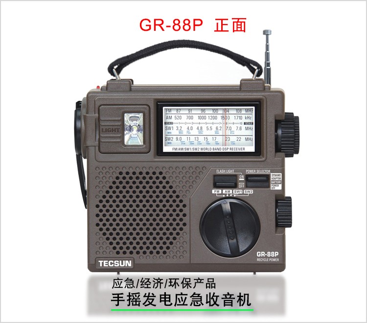 德生GR-88P 手摇发电防灾应急收音机便携式DSP芯片指针式带照明灯