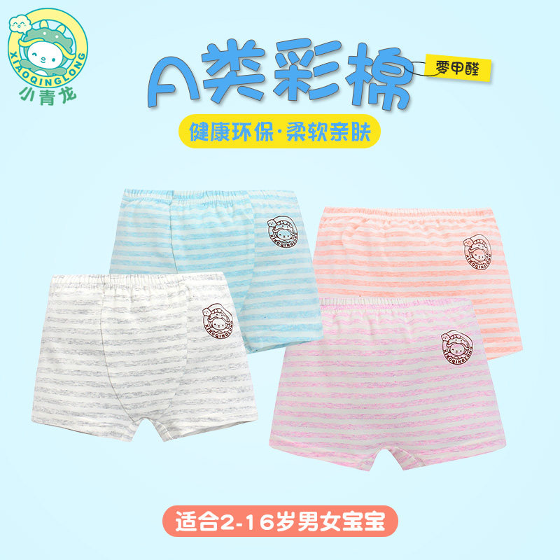 小青龙儿童彩棉平角三角内裤男童女童纯棉四角内裤中大童宝宝短裤