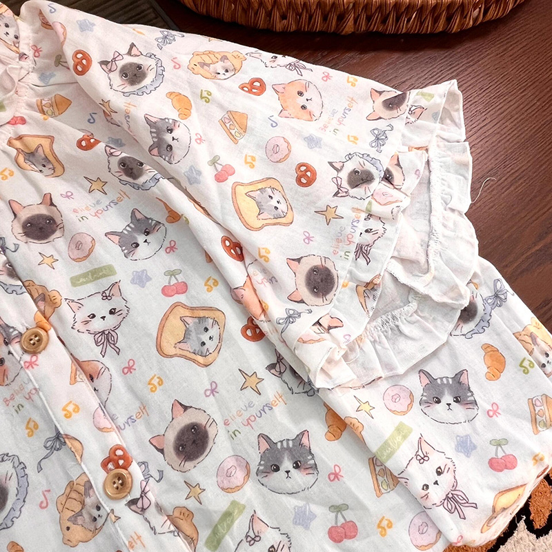 侘町2025年新款猫咪吐司短袖纯棉睡衣女夏季卡通可外穿居家服套装