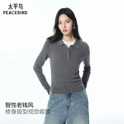 太平鸟羊毛混纺翻领修身套头针织衫25秋季新款老钱风内搭外穿毛衫