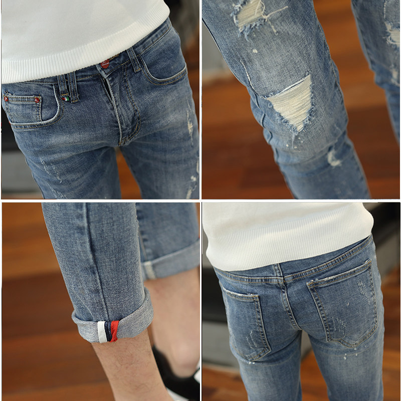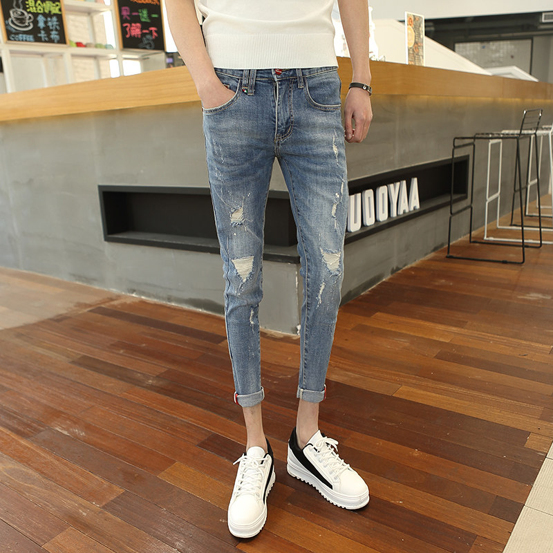 破洞牛仔裤男秋季新款2024韩版潮流显瘦小脚裤修身百搭潮牌九分裤