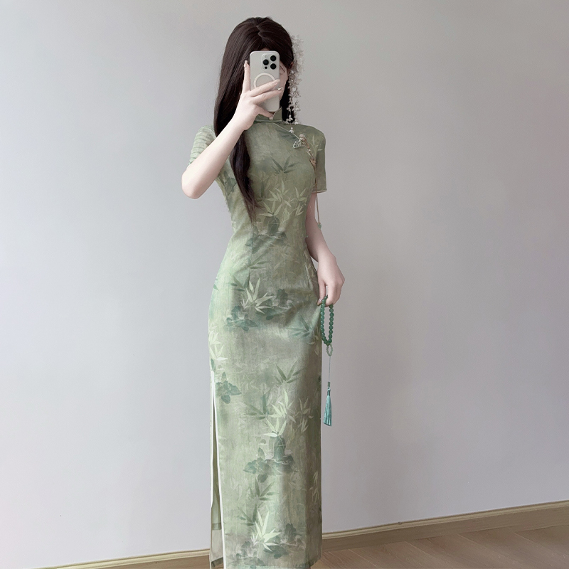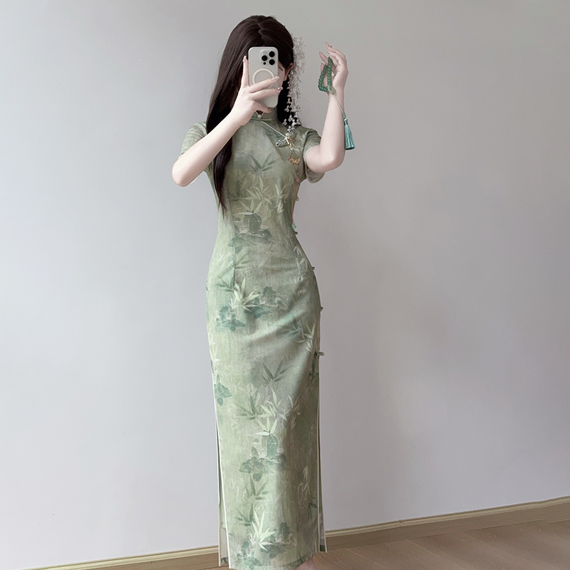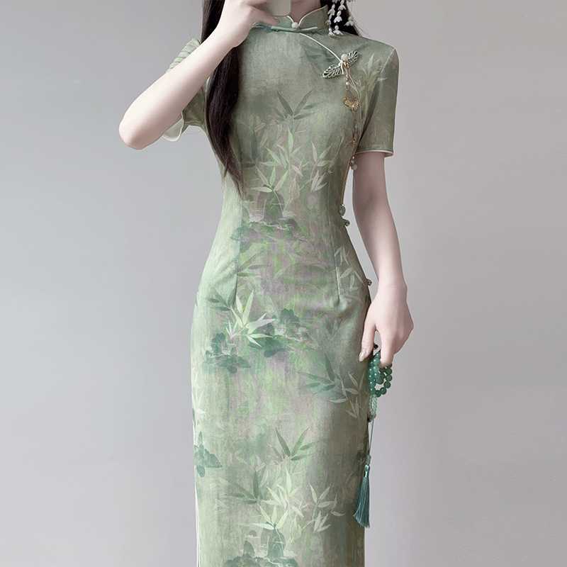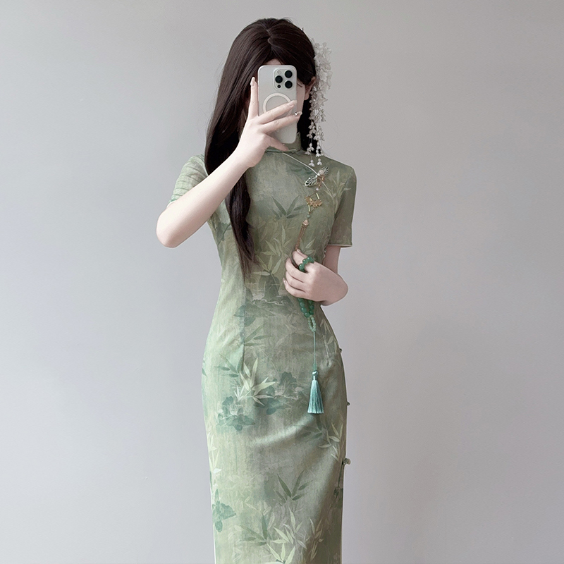 新中式国风改良绿色旗袍裙高级感2025夏季新款修身连衣裙日常可穿
