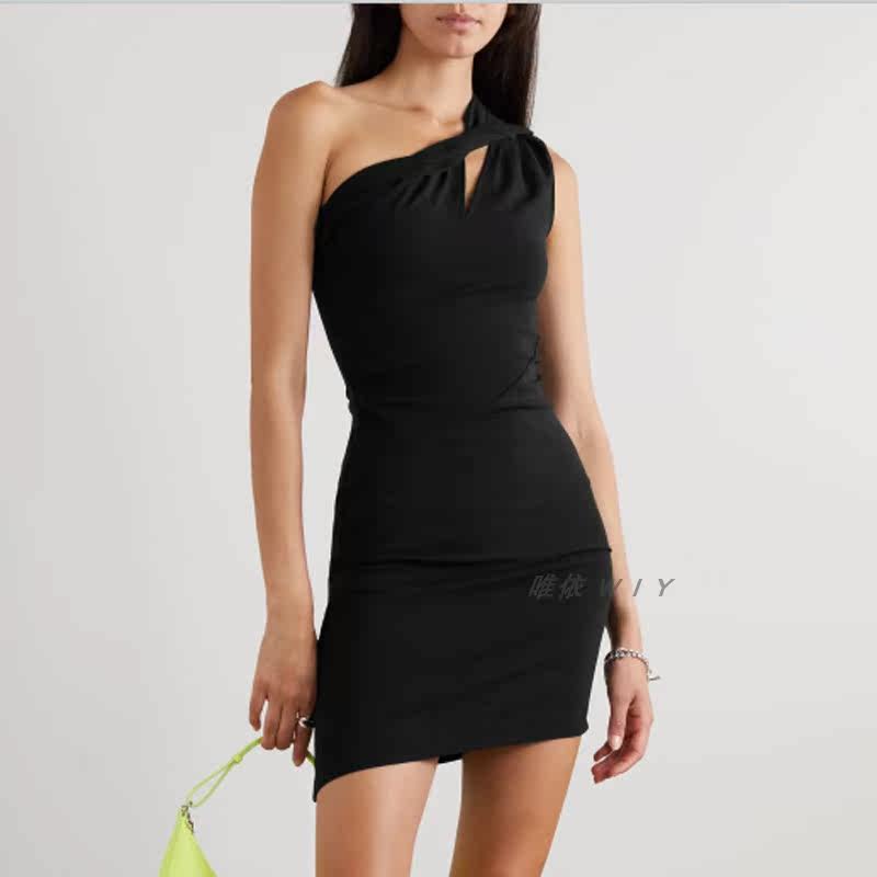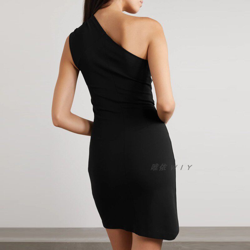 简单大方单肩短款小礼服连衣裙