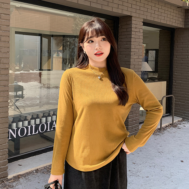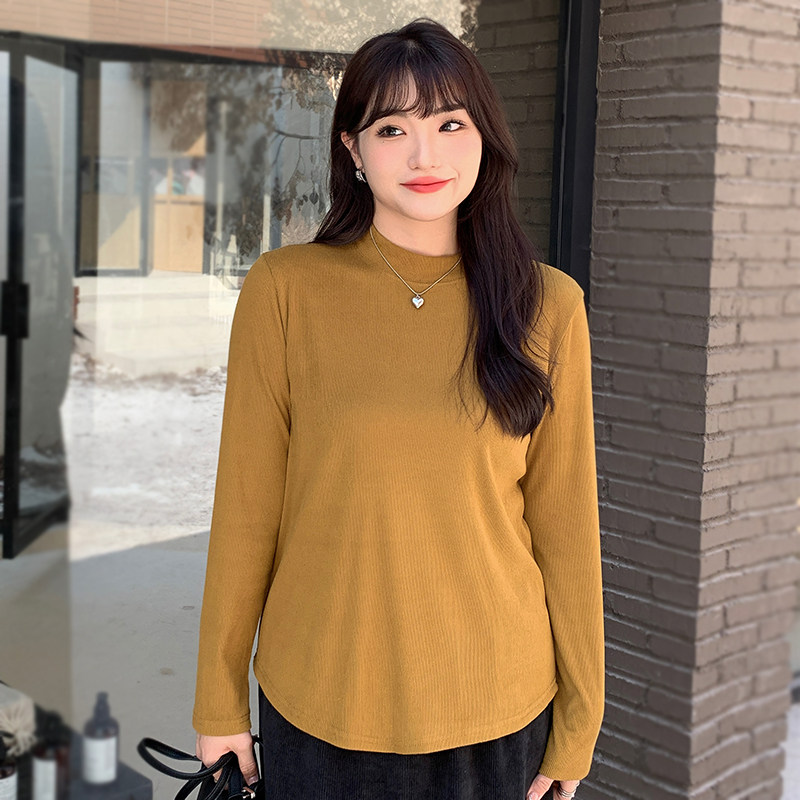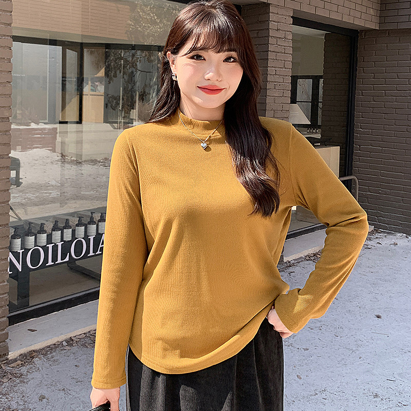 大码打底衫女秋冬女装200斤半高领宽松显瘦胖mm遮肚子加绒针织衫