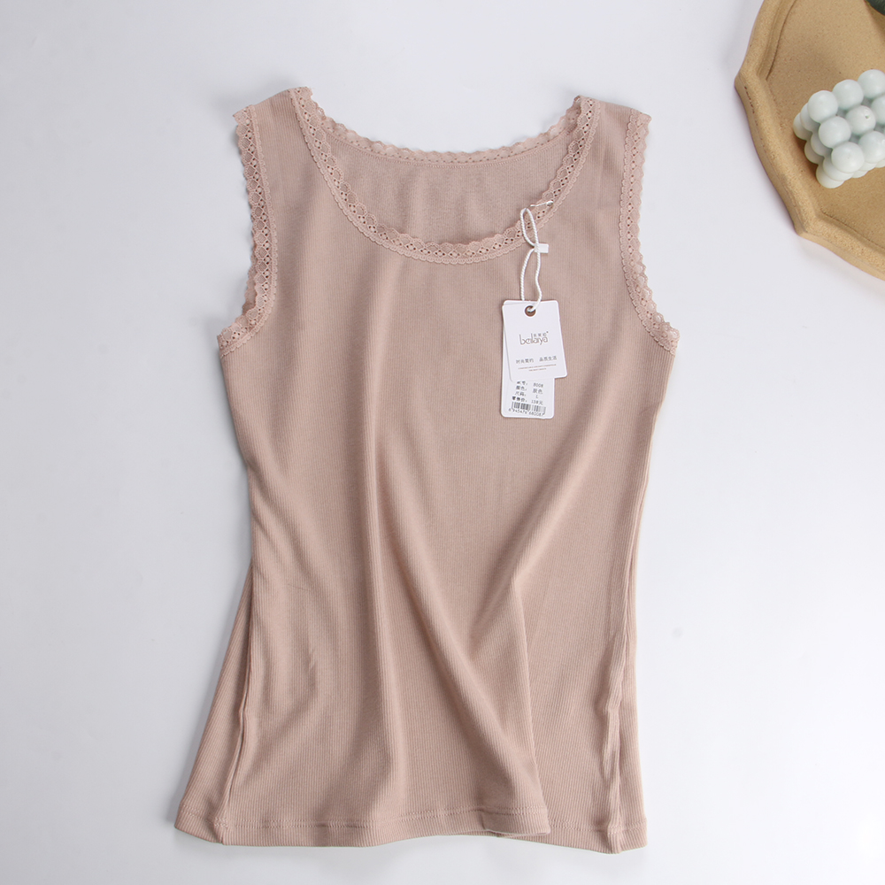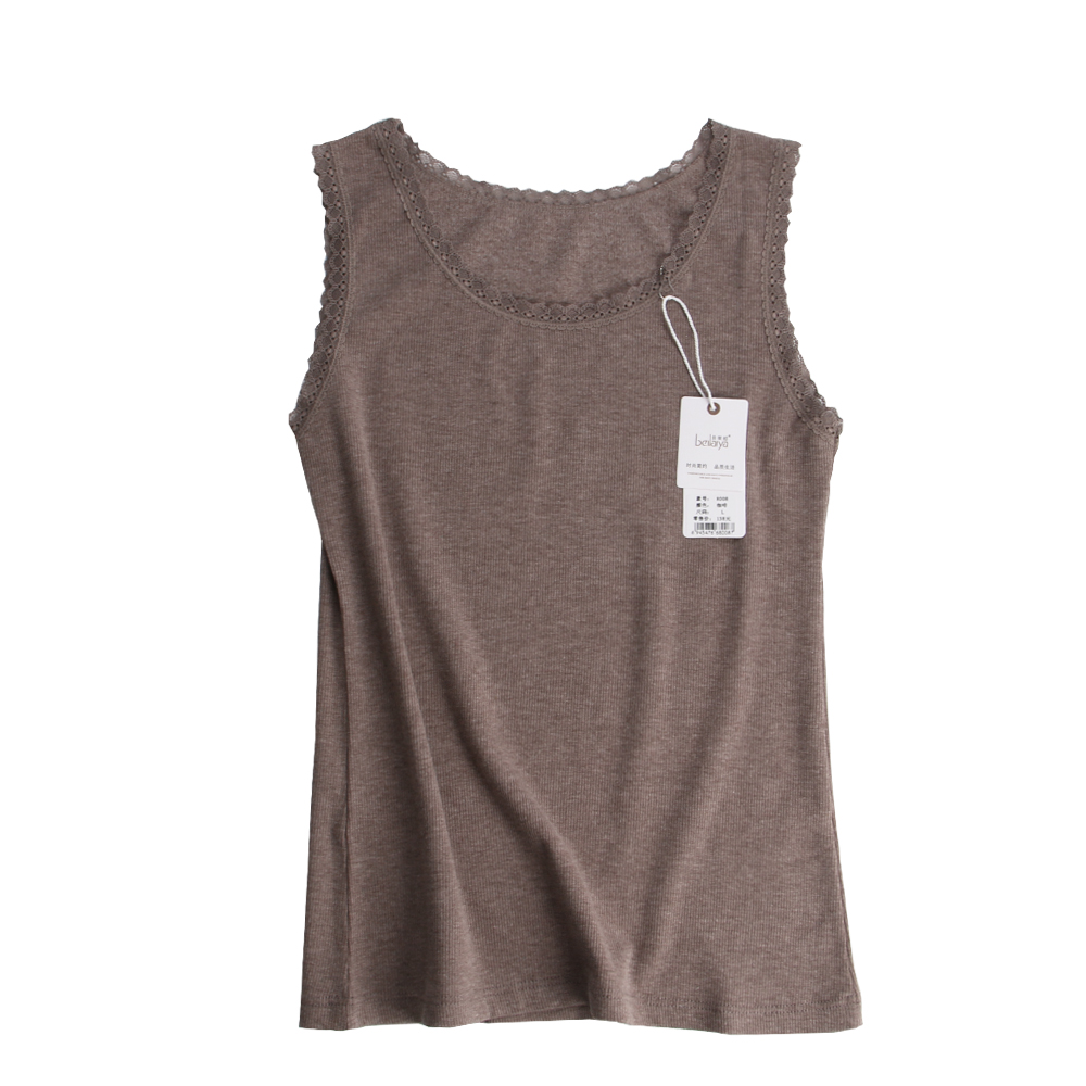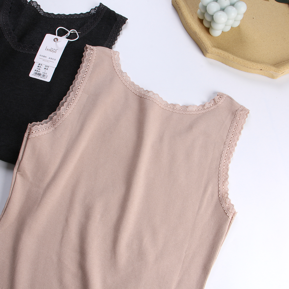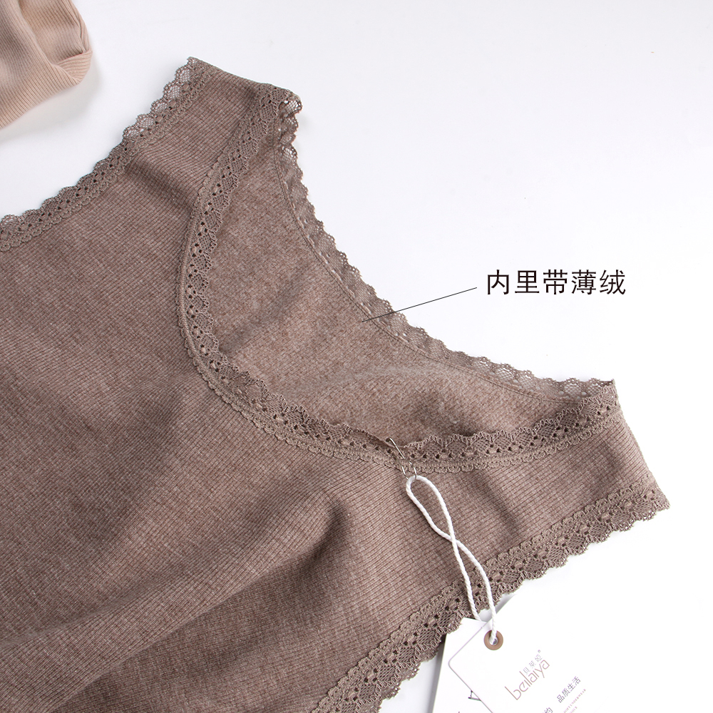 贝莱娅背心女士保暖罗纹棉发热薄绒秋冬蕾丝花边修身打底衫8008