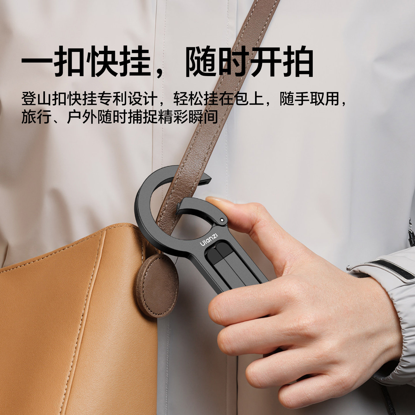 Ulanzi优篮子 MA57登山扣磁吸手机支架折叠便携Magsafe快挂三脚架手持拍照摄影适用苹果安卓桌面神器自拍杆