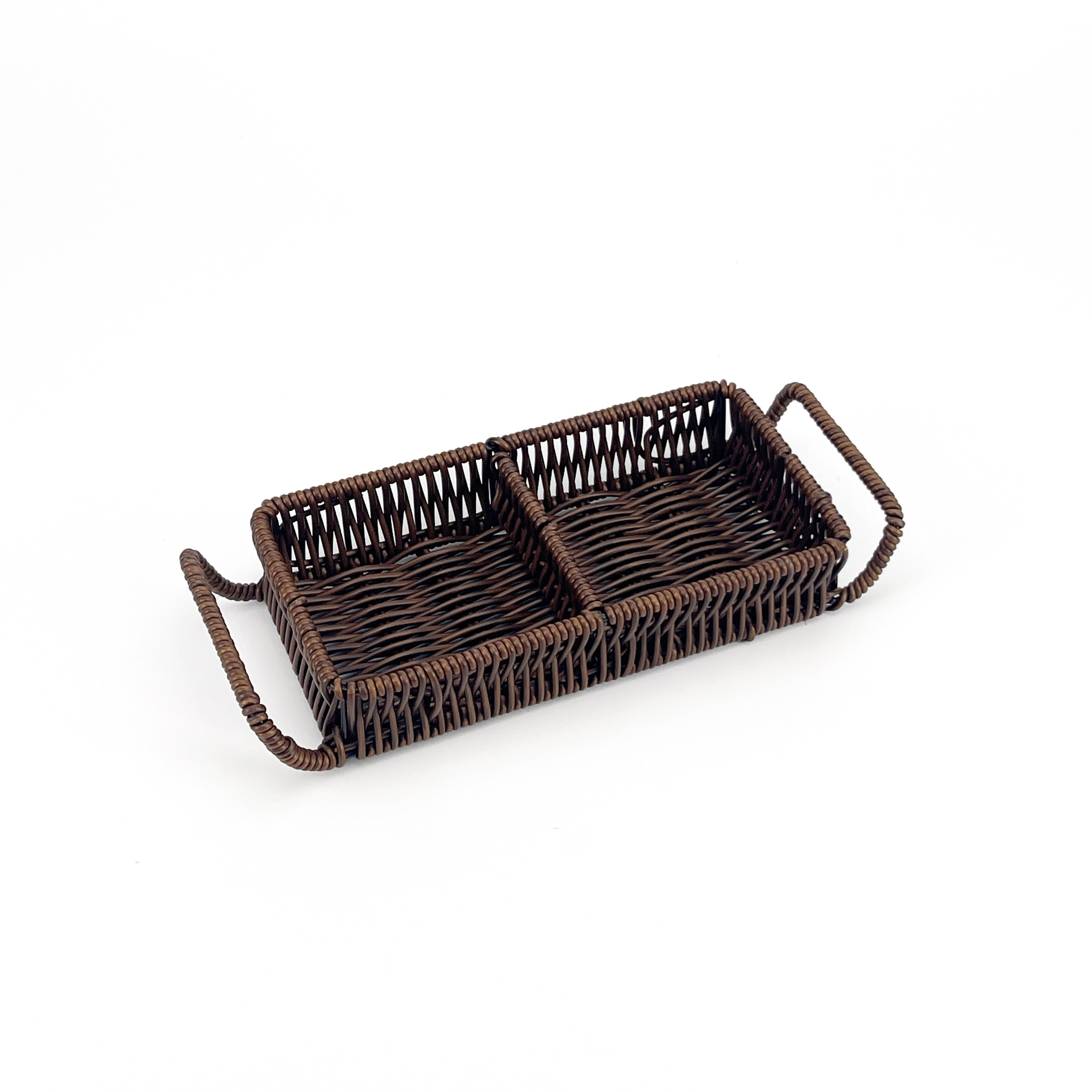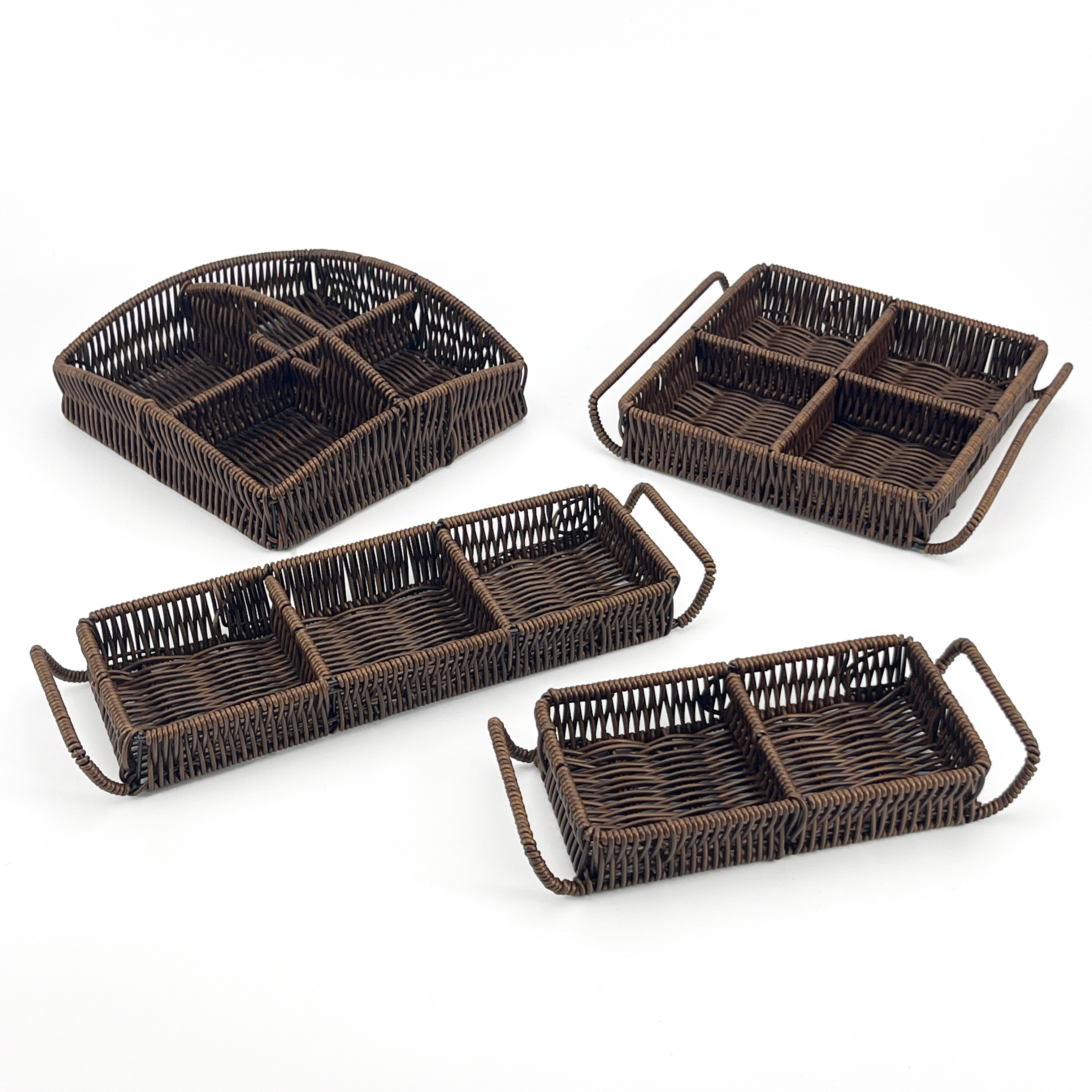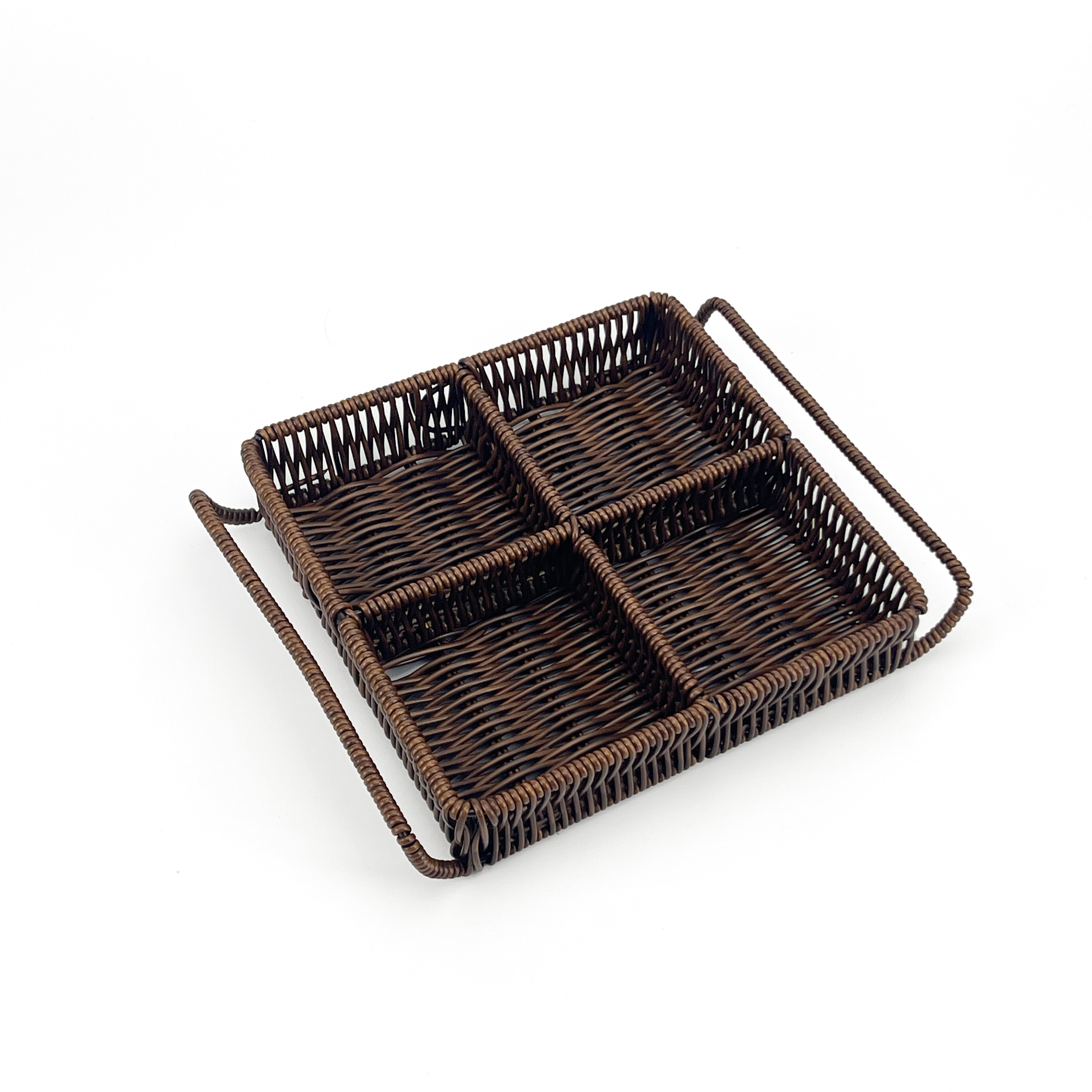 复古仿藤塑料编织筐茶几水果干果碟零食小吃糖果盘分格二三四宫格