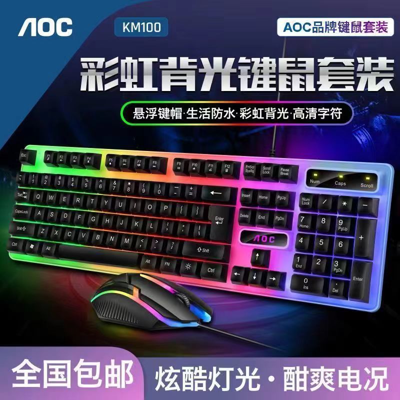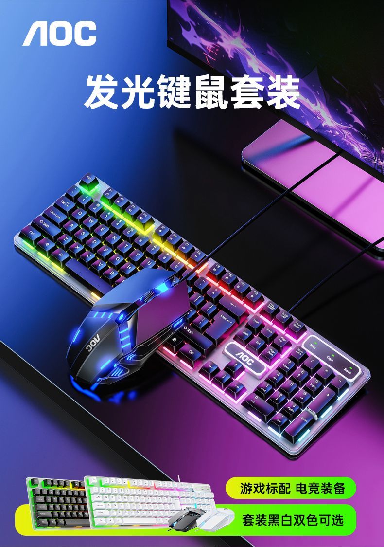 AOC机械手感发光USB通用有线键盘鼠标套装电竞游戏笔记本台式办公