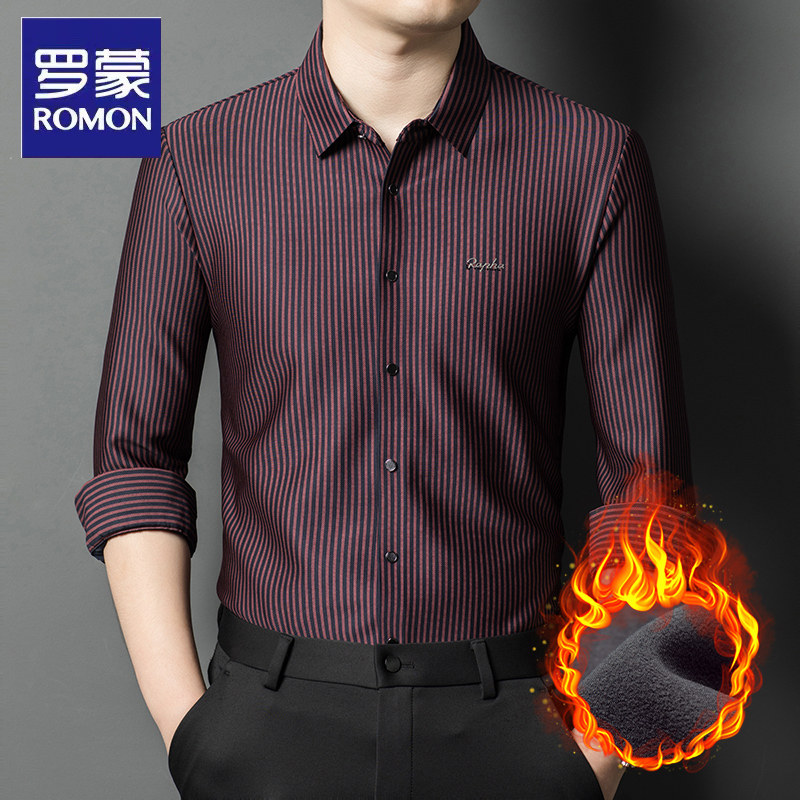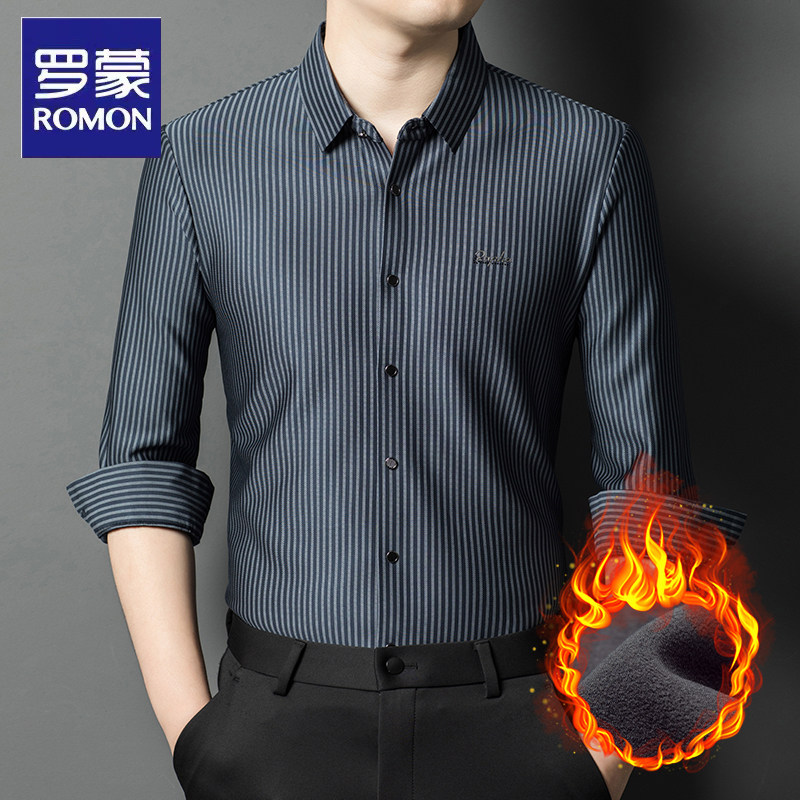 罗蒙加绒加厚翻领衬衫男士秋冬季商务休闲柔顺亲肤免烫抗皱上衣