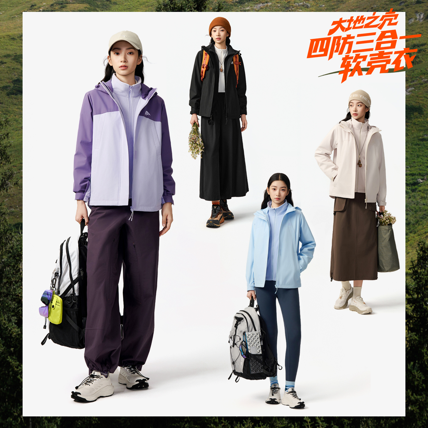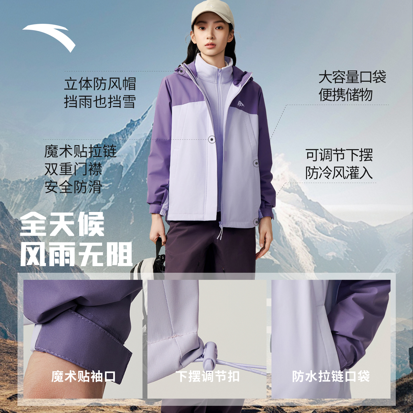 安踏抓绒三合一软壳衣丨四防运动外套女士摇粒绒保暖夹克运动上衣