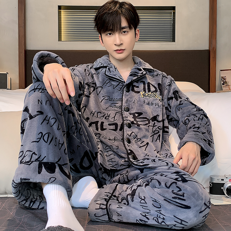 男士睡衣男款冬季加绒加厚珊瑚绒帅气男式家居服秋冬天2025年新款