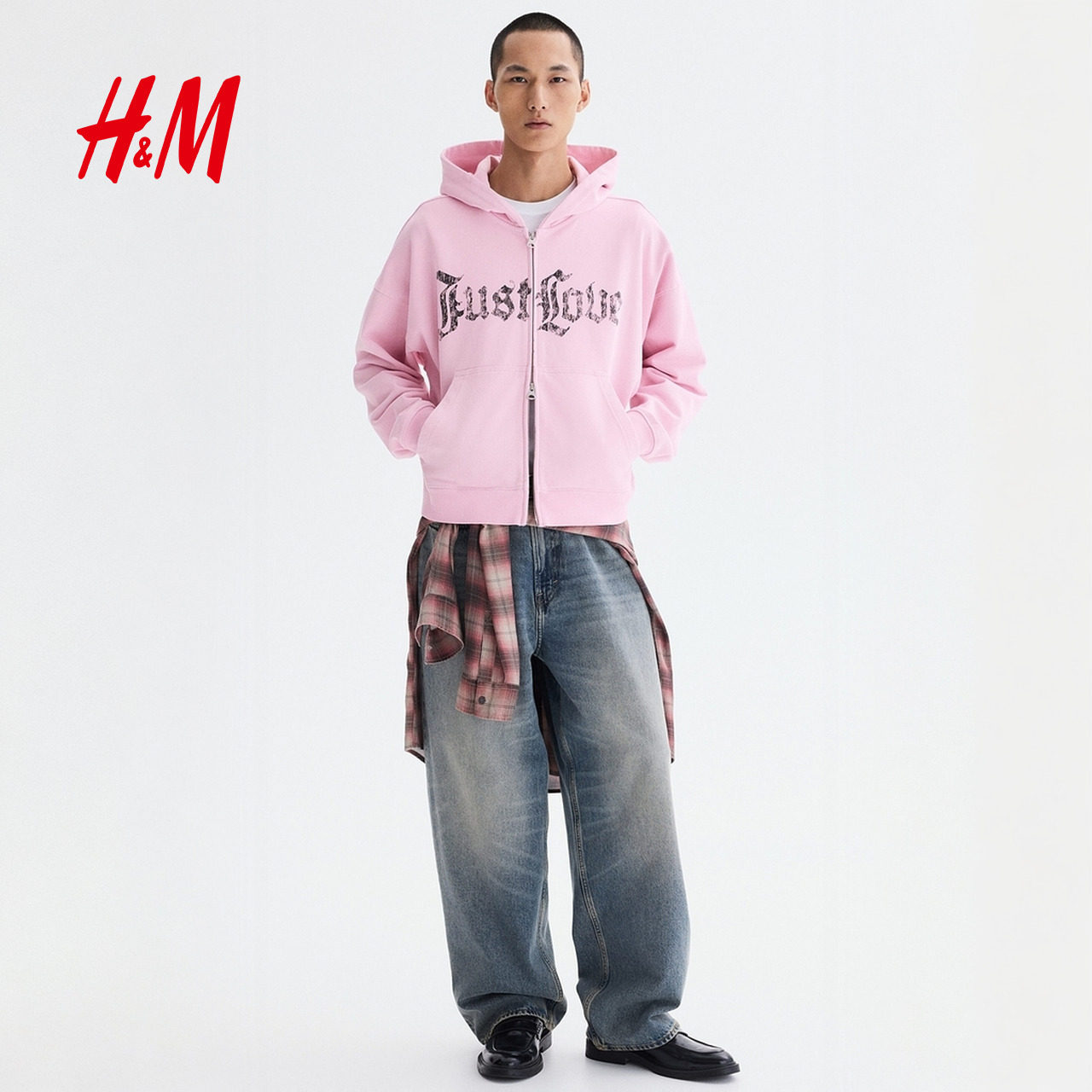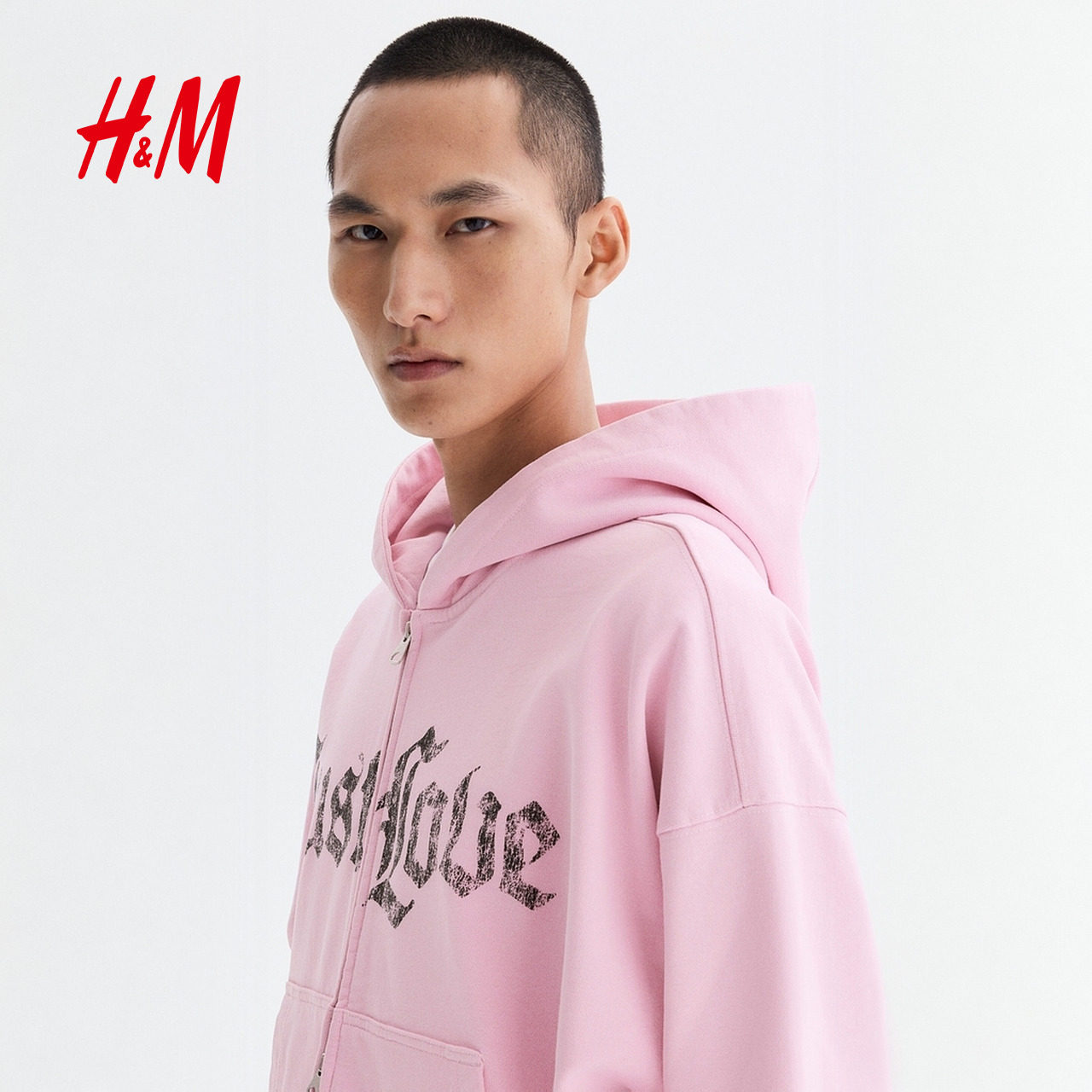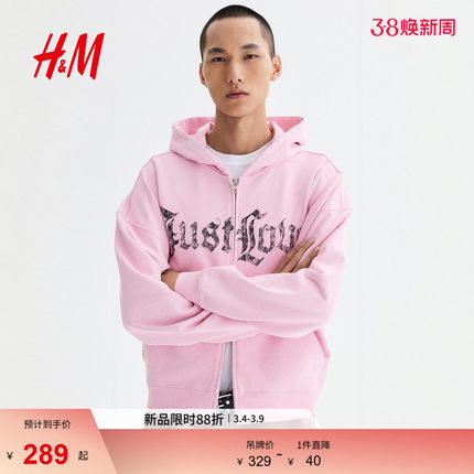 HM男装女装卫衣2026春季新款情侣装大廓形全拉链连帽衫1329547