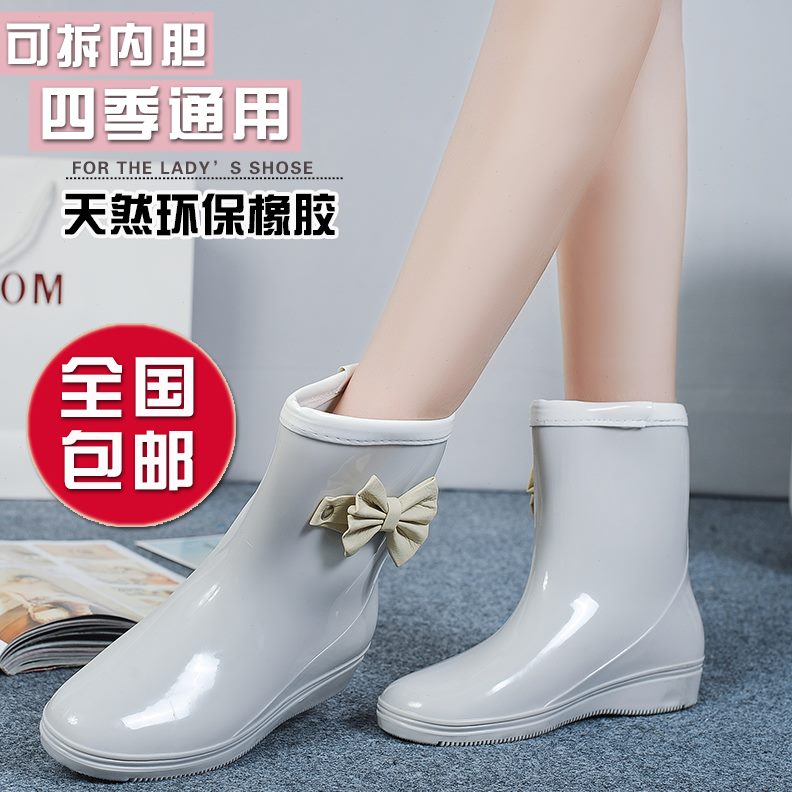 学生加绒厨房胶鞋雨靴水鞋套鞋韩版防滑雨鞋女厚底中洗车时尚短筒